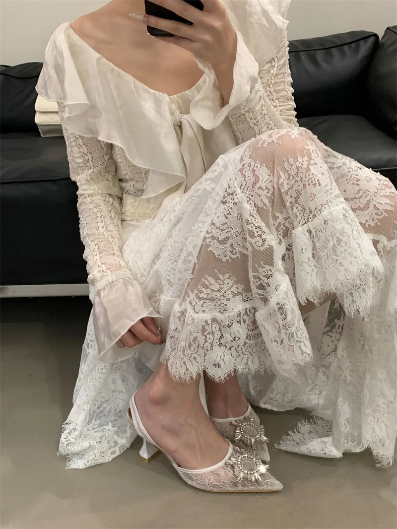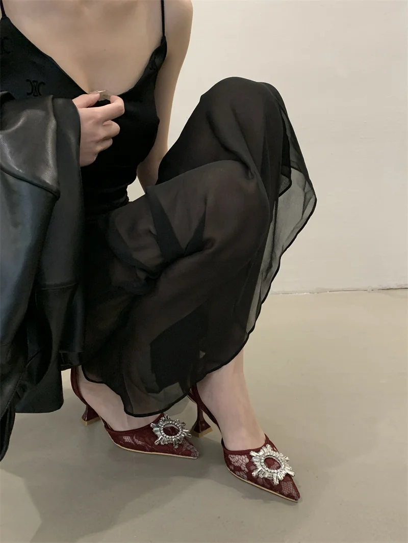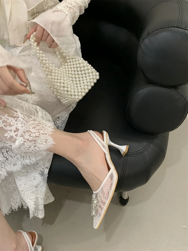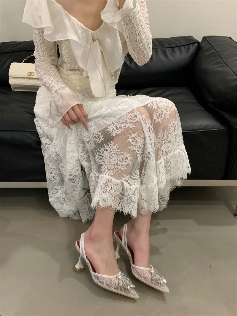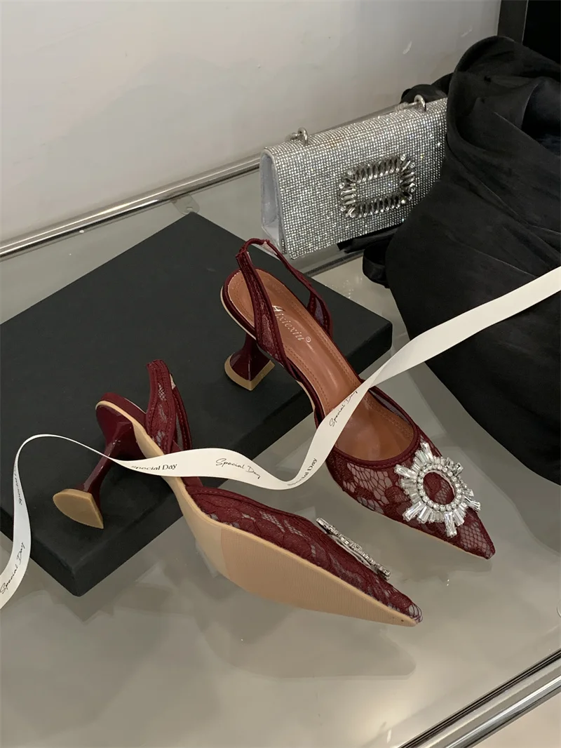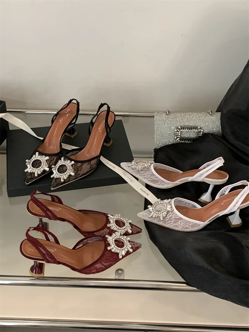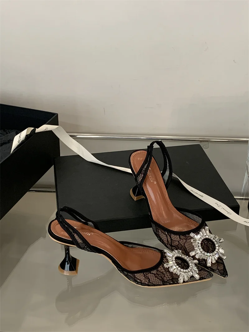 Cyflymder Lace Denim Women's Buckle Strap Rhinestone Sandals Female Shoe High Heels Laces Girls 2025 Comfort High-heeled Closed Spring
