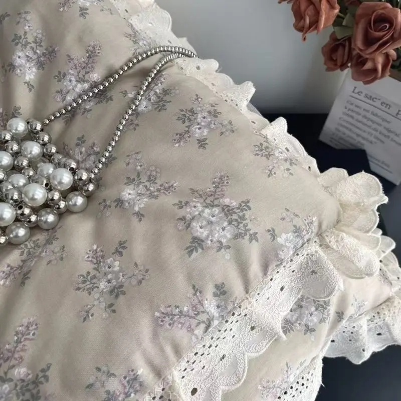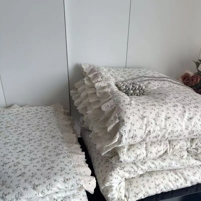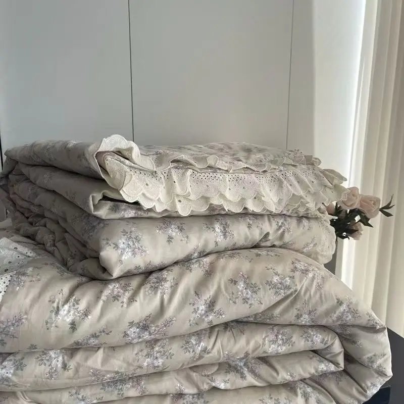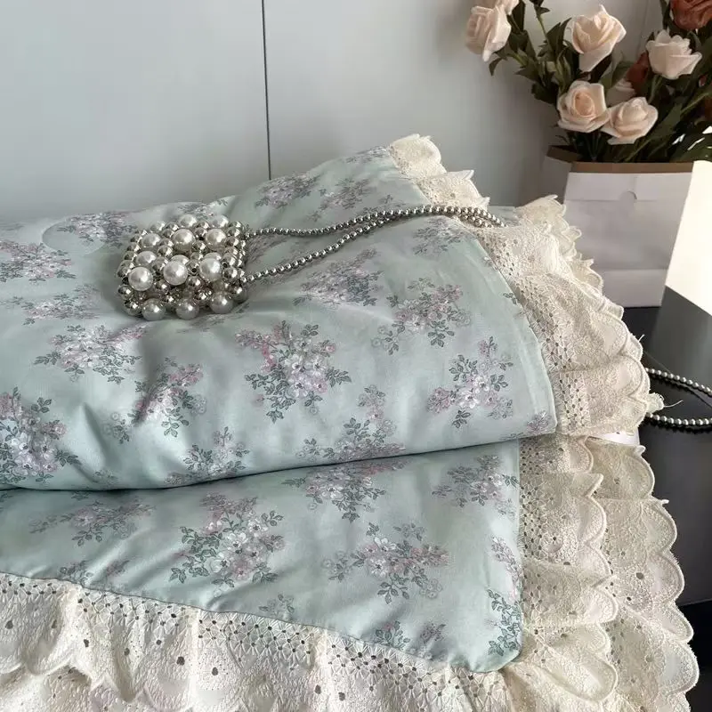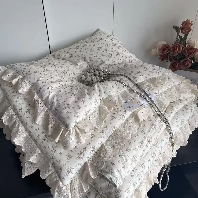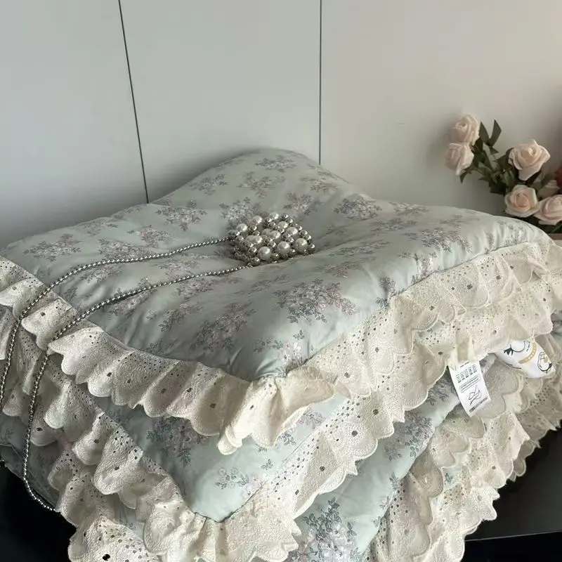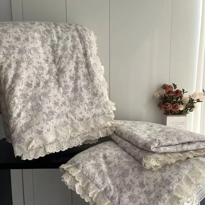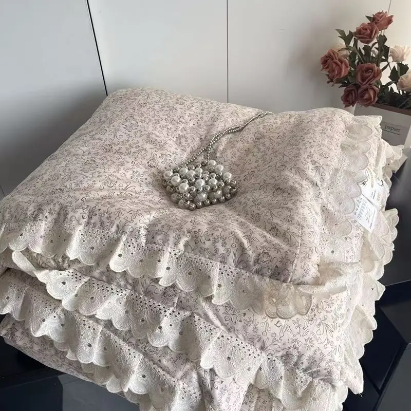 Cyflymder Lace Pure Cotton Quilt 200x230cm Comforter Thin Summer Floral Printed Double Layer Gauze Quilted Blanket Queen Size Bedding