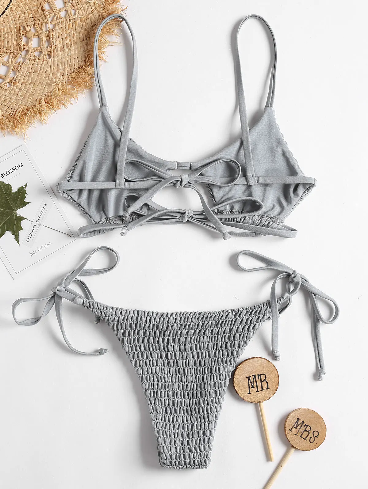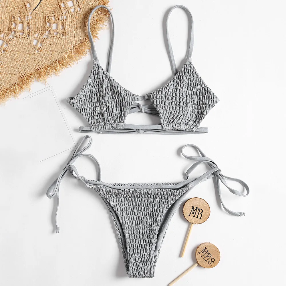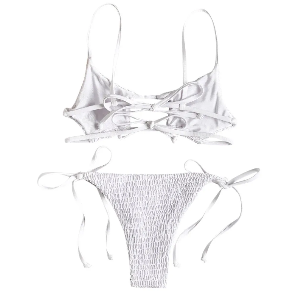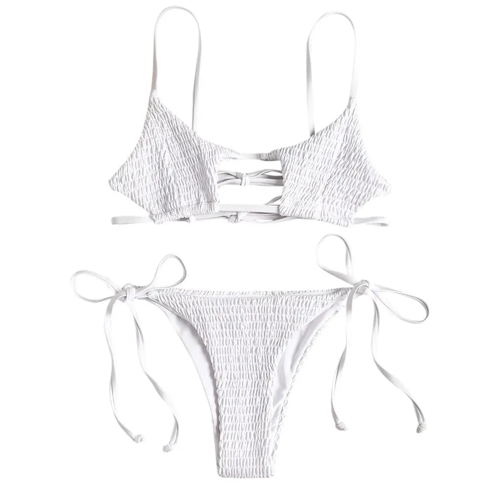 Cyflymder Lacing up Bandage Sexy Swimwear Women Swimsuit Solid Adjustable Summer Bikini Set Beach Wear Backless Biquini Swimsuit Female