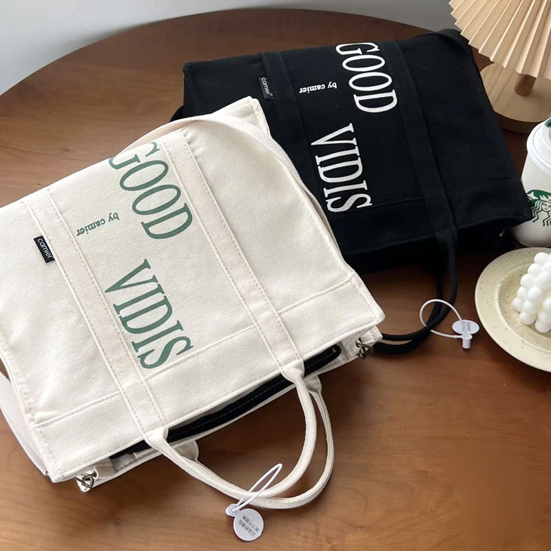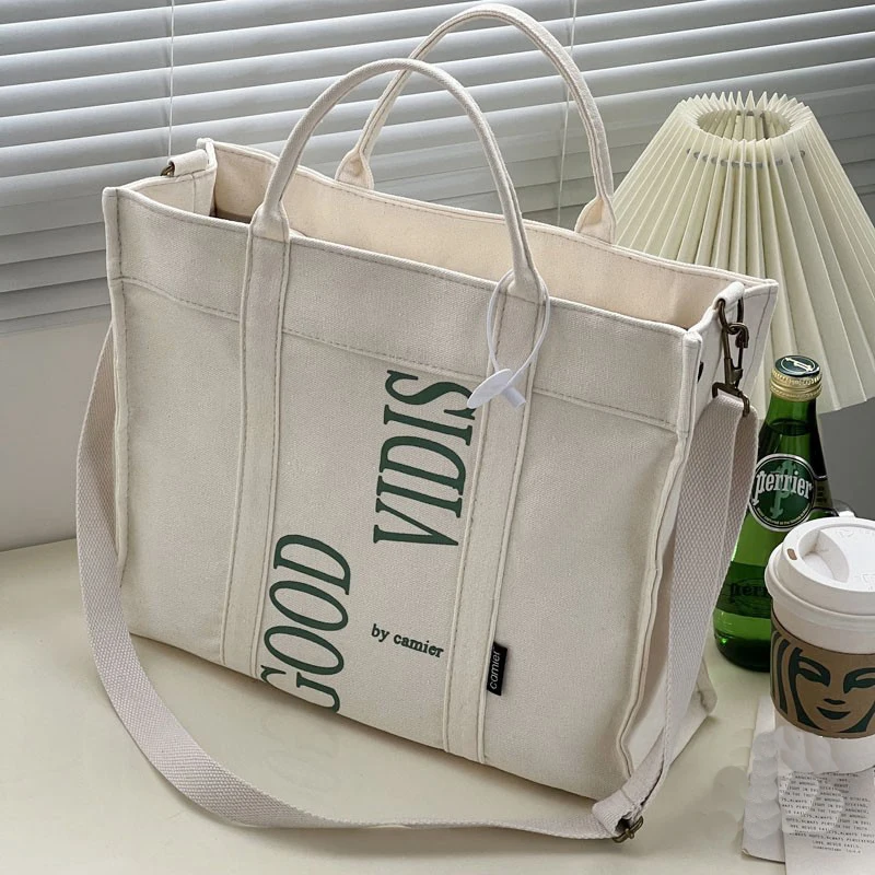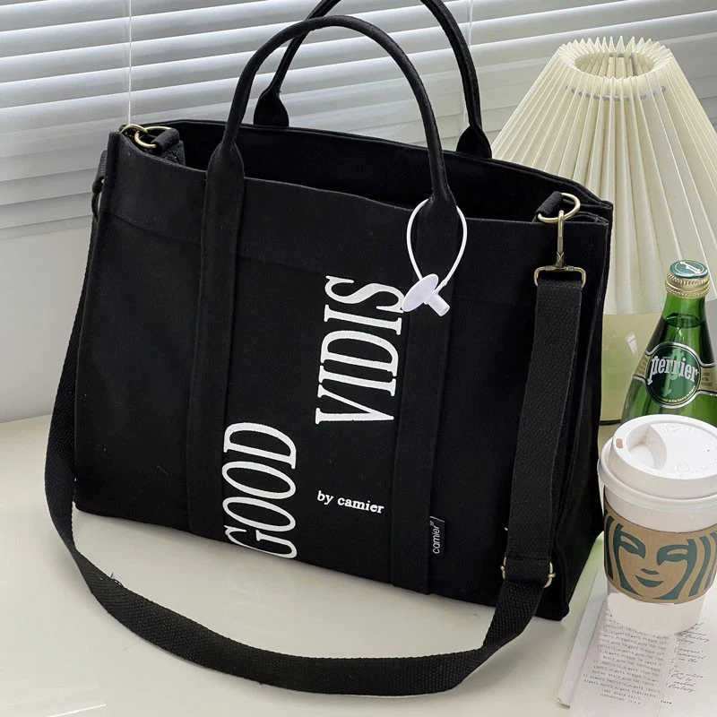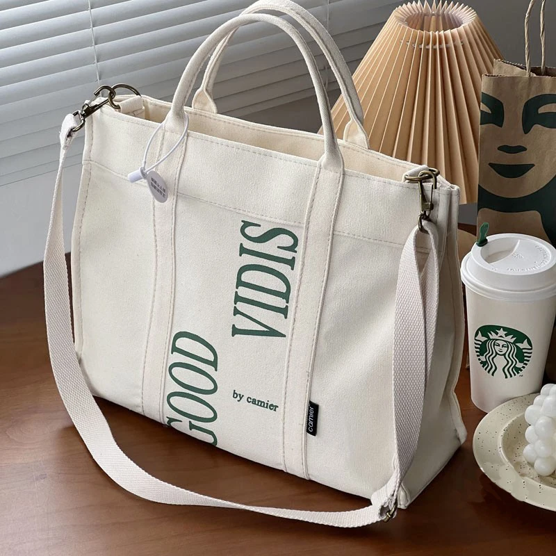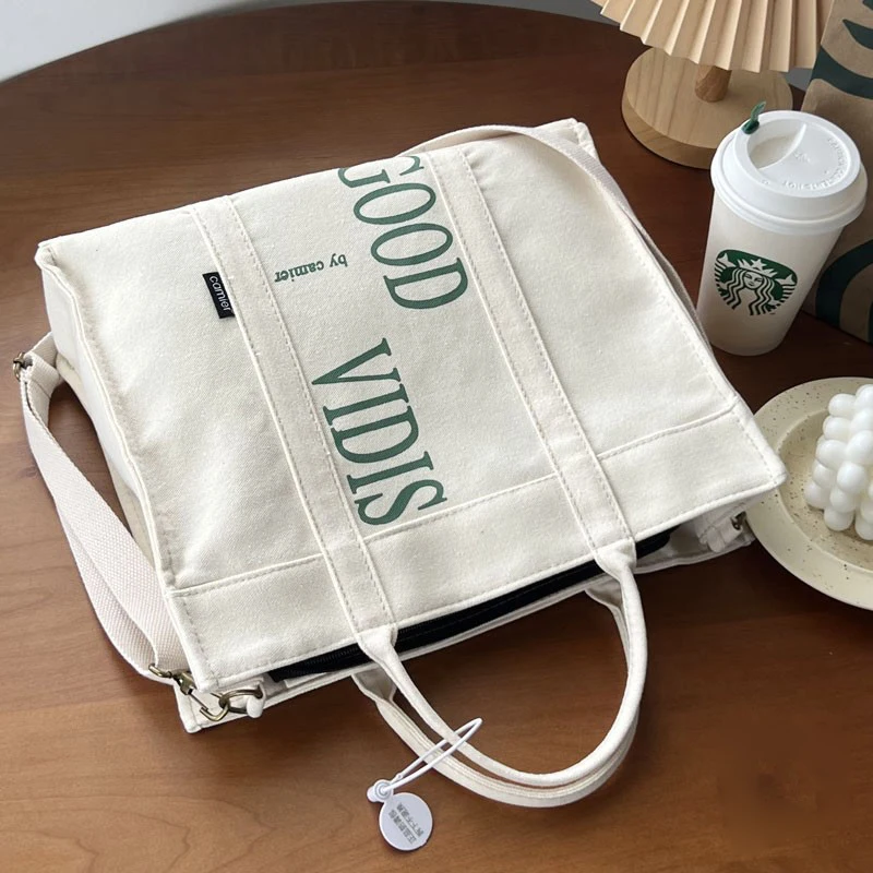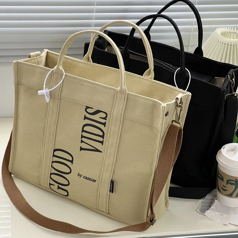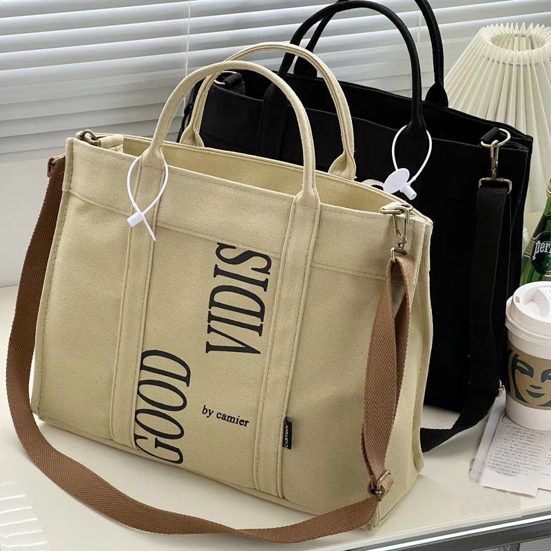 Cyflymder Ladies Handbag Letter Commuter Daily Messenger Bags Thickened Canvas Tote Bag Leisure Student Simple Shoulder Bag