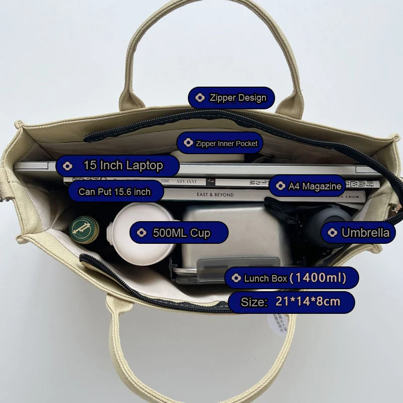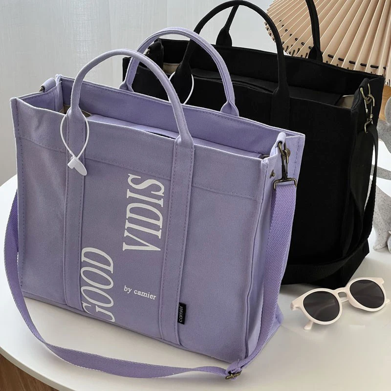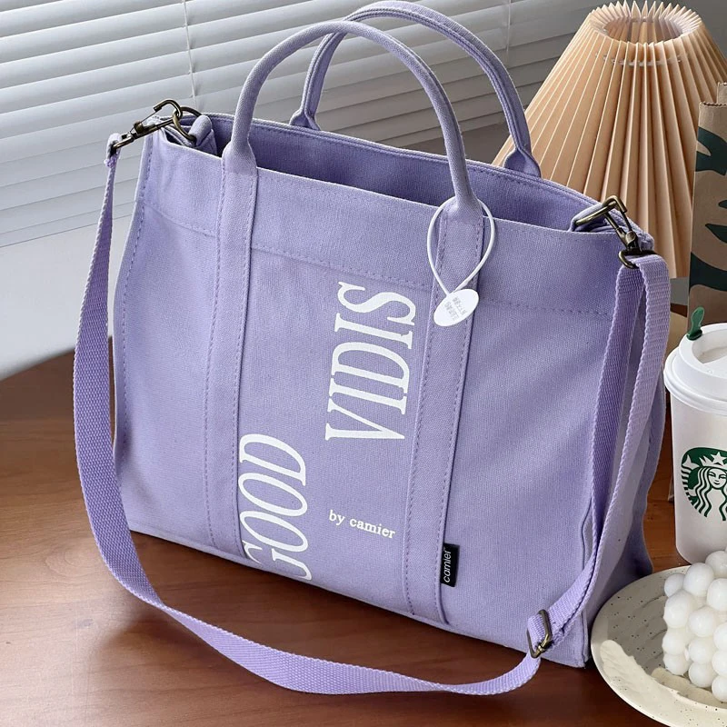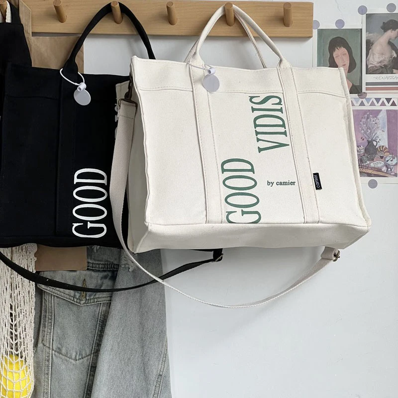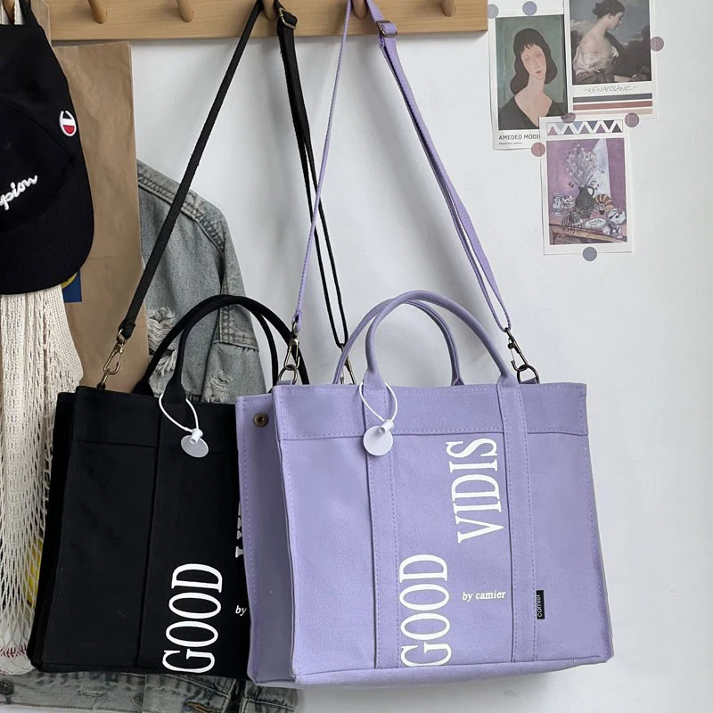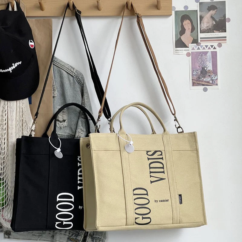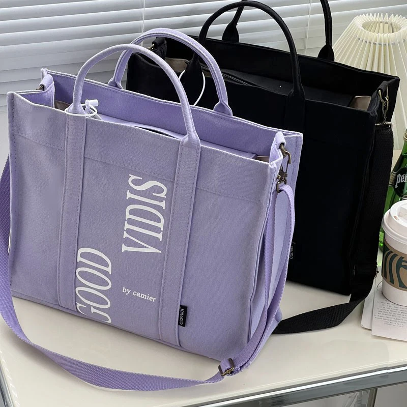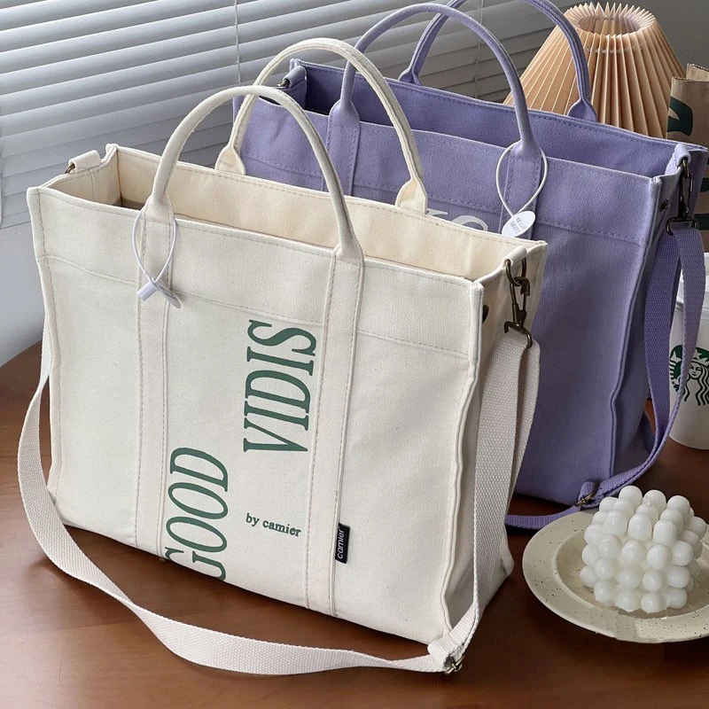 Cyflymder Ladies Handbag Letter Commuter Daily Messenger Bags Thickened Canvas Tote Bag Leisure Student Simple Shoulder Bag