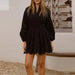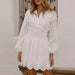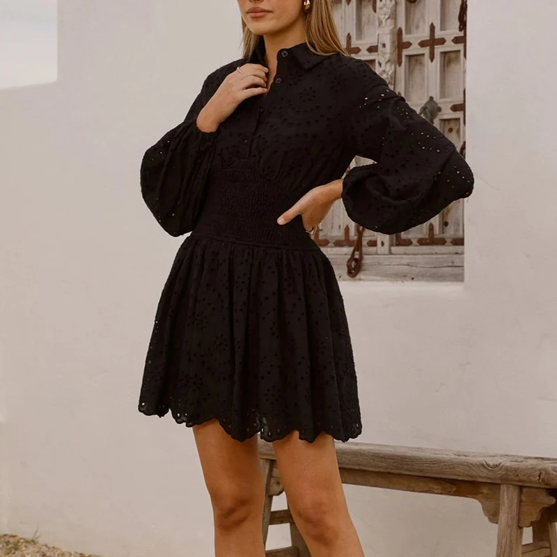 Cyflymder Ladies Solid Hollow Out Crochet Dress 2025 Spring Turn-down Collar Button A-Line Dress Autumn Long Sleeve Jacquard Pleated Dress