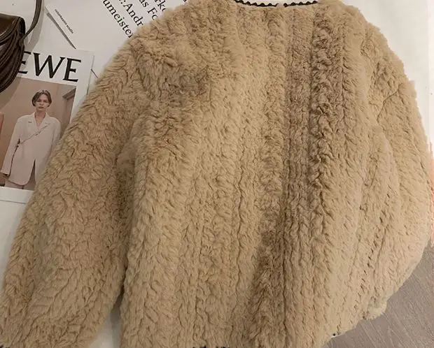 Cyflymder Lamb's Wool Jacket Women Faux Fur Jacket Trends Design Short Tops Autumn Winter New Loose Plush Top Long Sleeve Single-breasted
