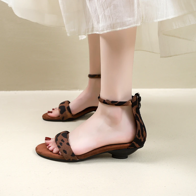 Cyflymder Leopaed Heeled Sandals Women's Elegant Heels Shoes Open Toe Summer New Slides Walking Trend Dress Luxury Mujer De Sandalias