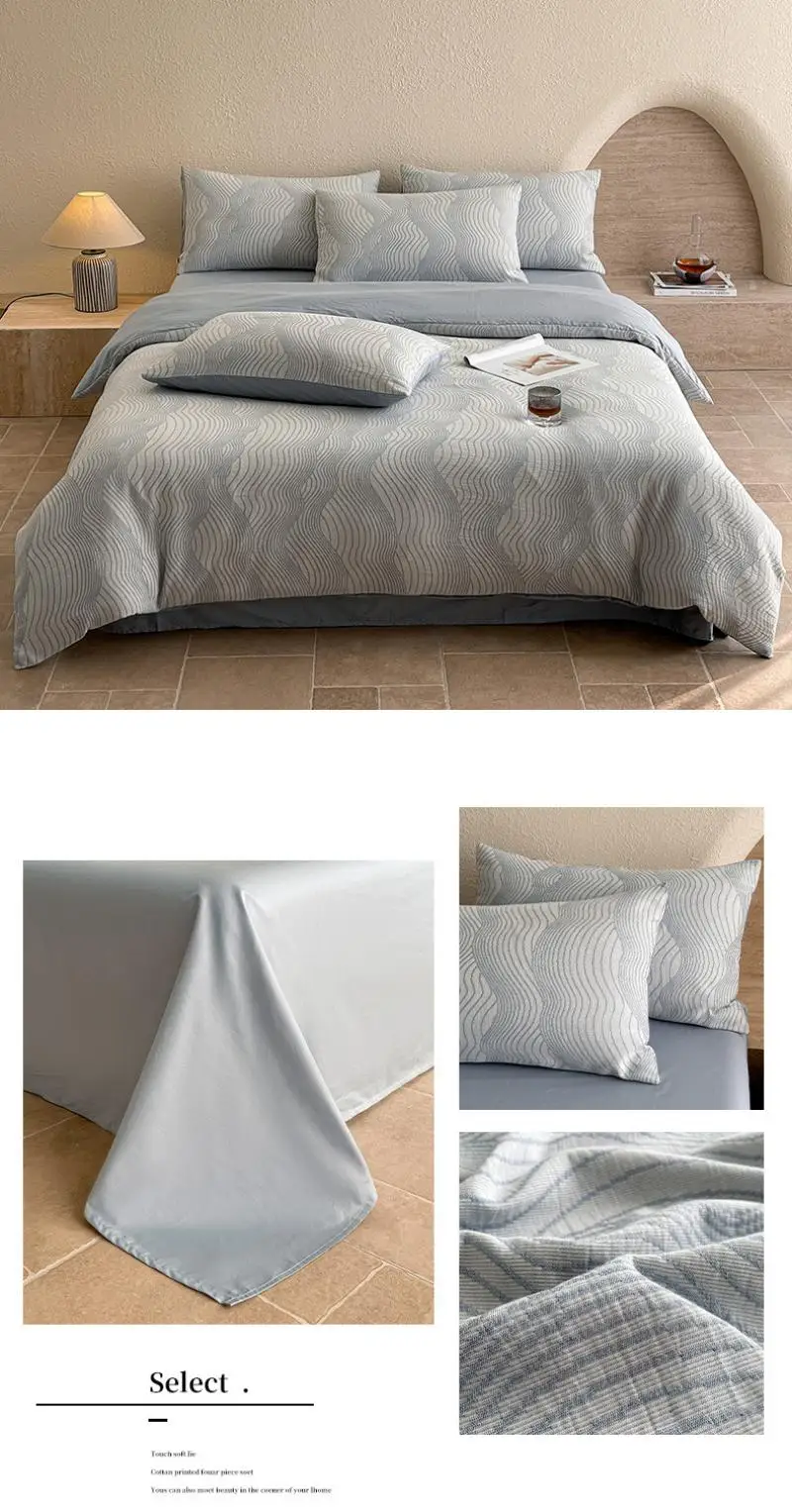Cyflymder Light Luxury Soft Thick 100% Cotton Flat Sheet Sets Satin Jacquard Silky Bedding Set for Seasons Single Double Bed Comfort Set