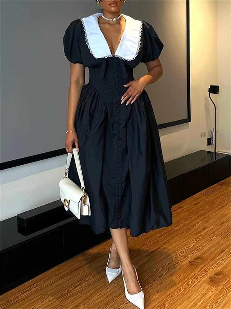 Cyflymder Long Dresses Women Sexy V Neck Short Sleeve Sweet Dress Elegant New in Summer Fashion Street Wear