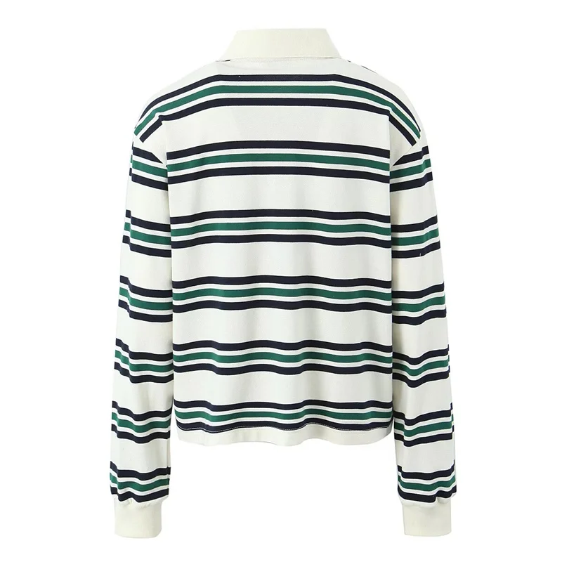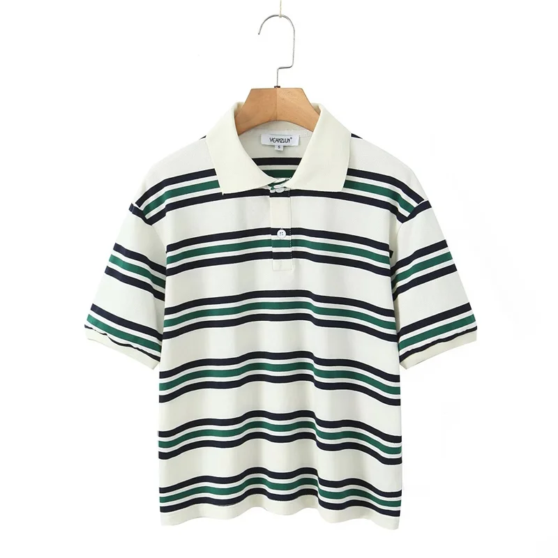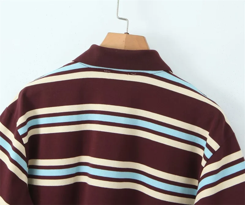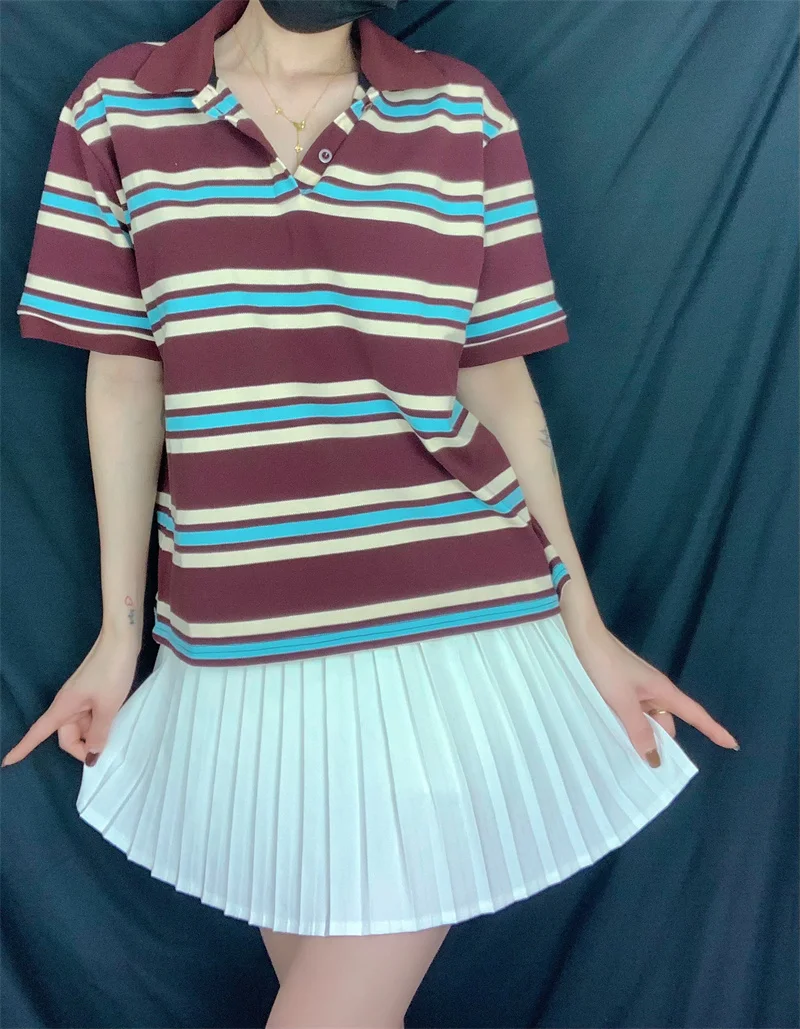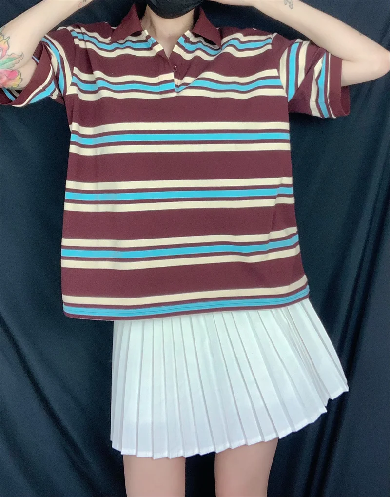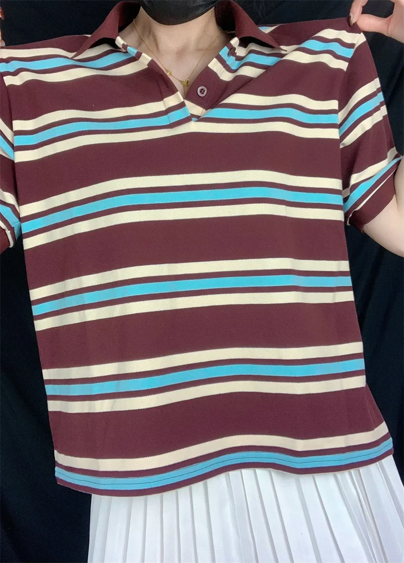 Cyflymder Loose Fits Casual Street Sle T-irt Collar Contrast Color Versatile Lazy Sli Top American Retro Striped