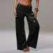 Cyflymder Loose Solid Color Sequin Pants Woman Cinched Waist Glitter Straight Baggy Long Pants Casual Street Chic Sparkle Women's Trousers
