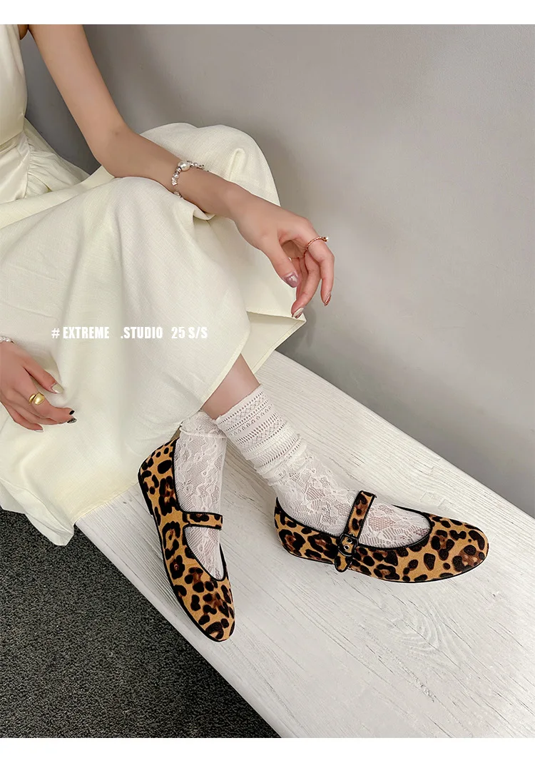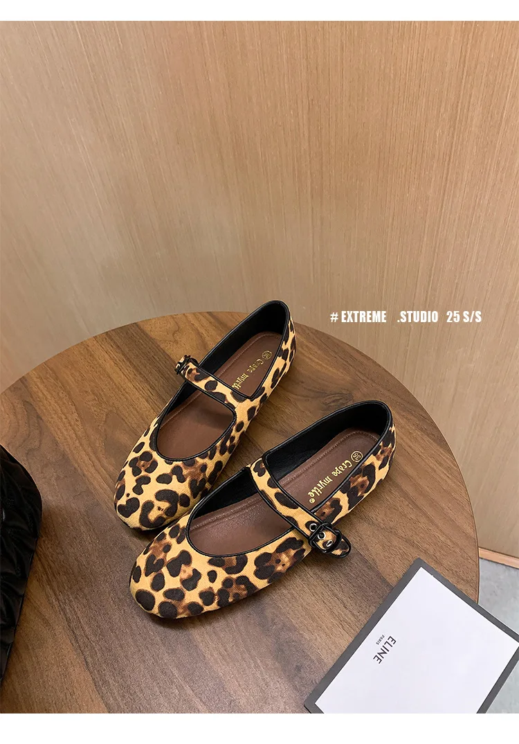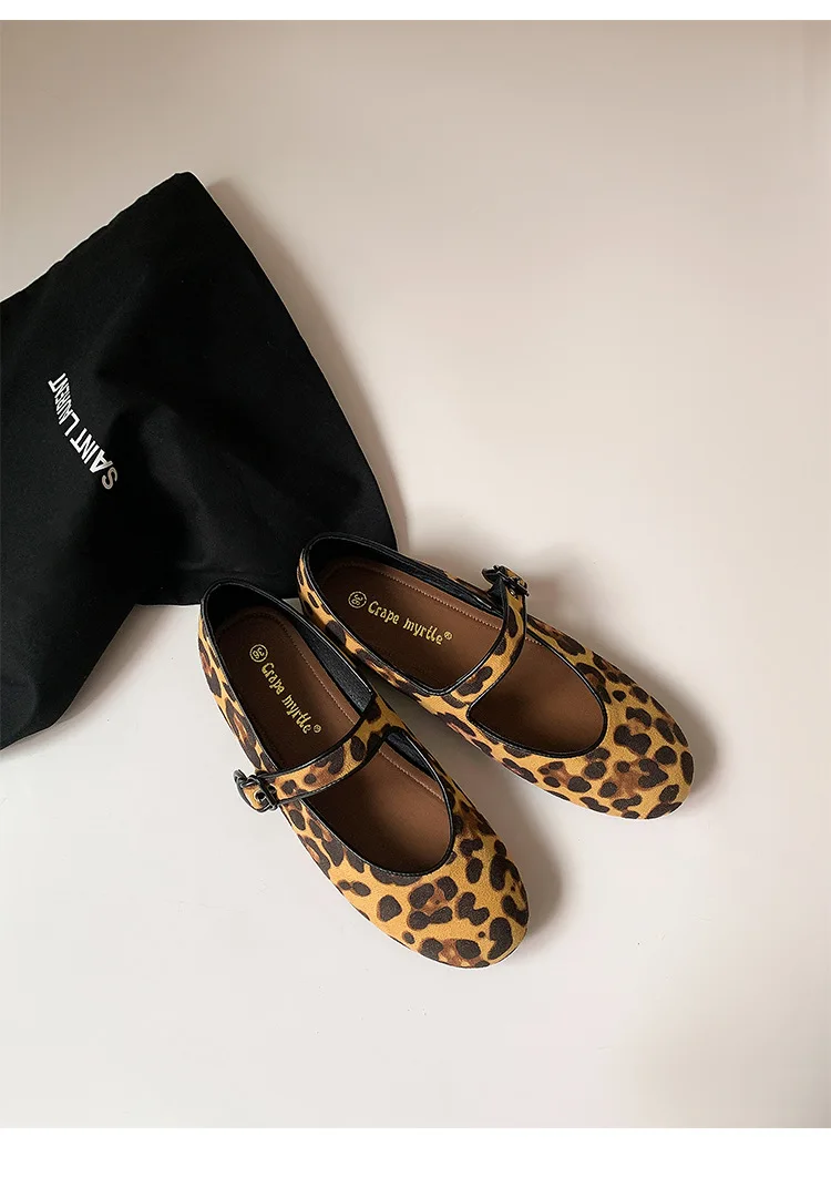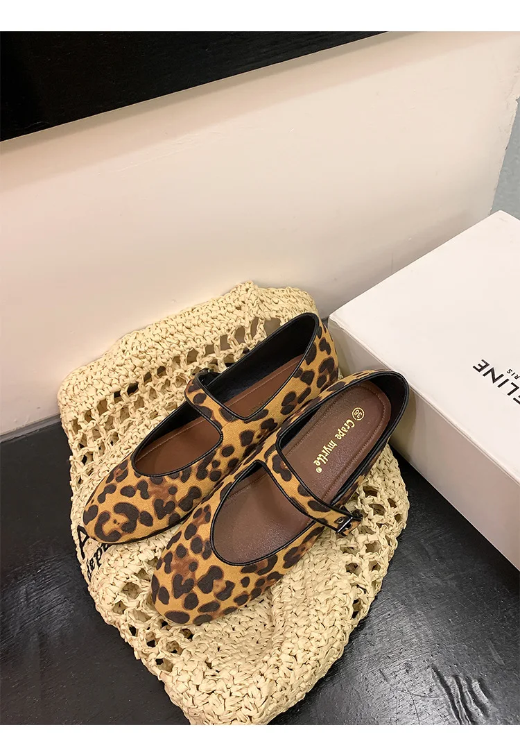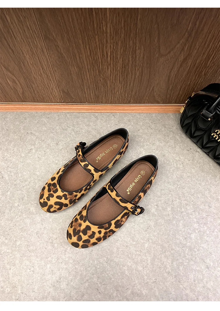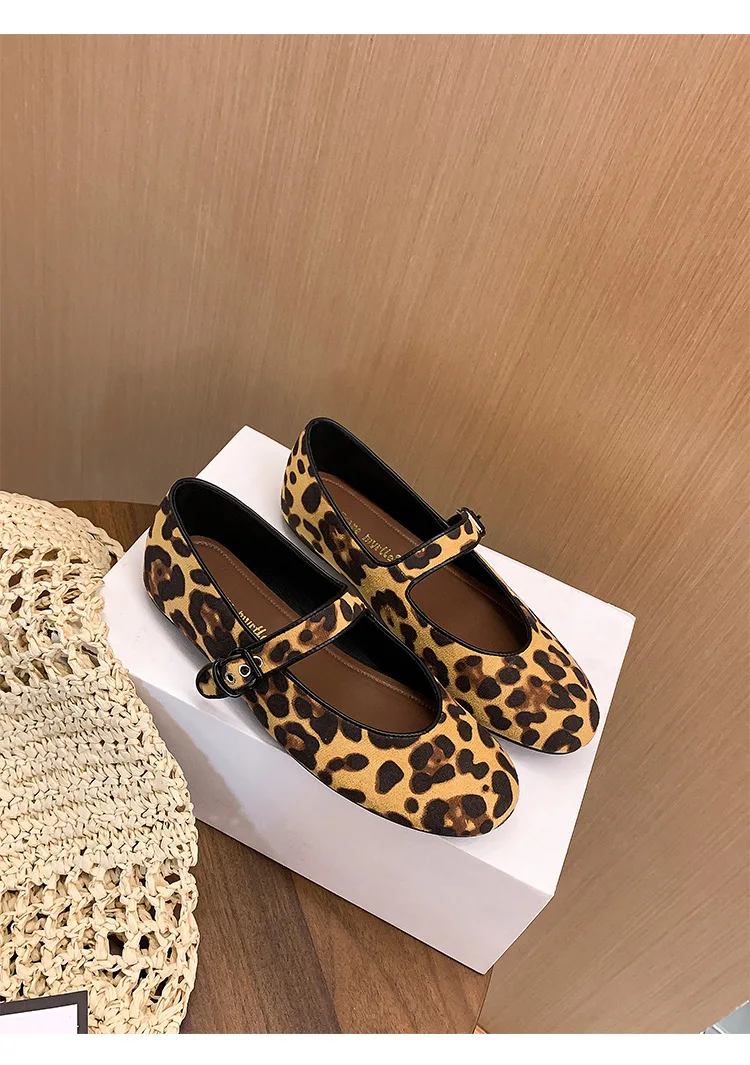 Cyflymder Low Heels Leopard Shoes Ballerinas Woman 2025 Modis Round Toe Casual Female Sneakers Flats All-Match Ballet Cute Dress leopard M