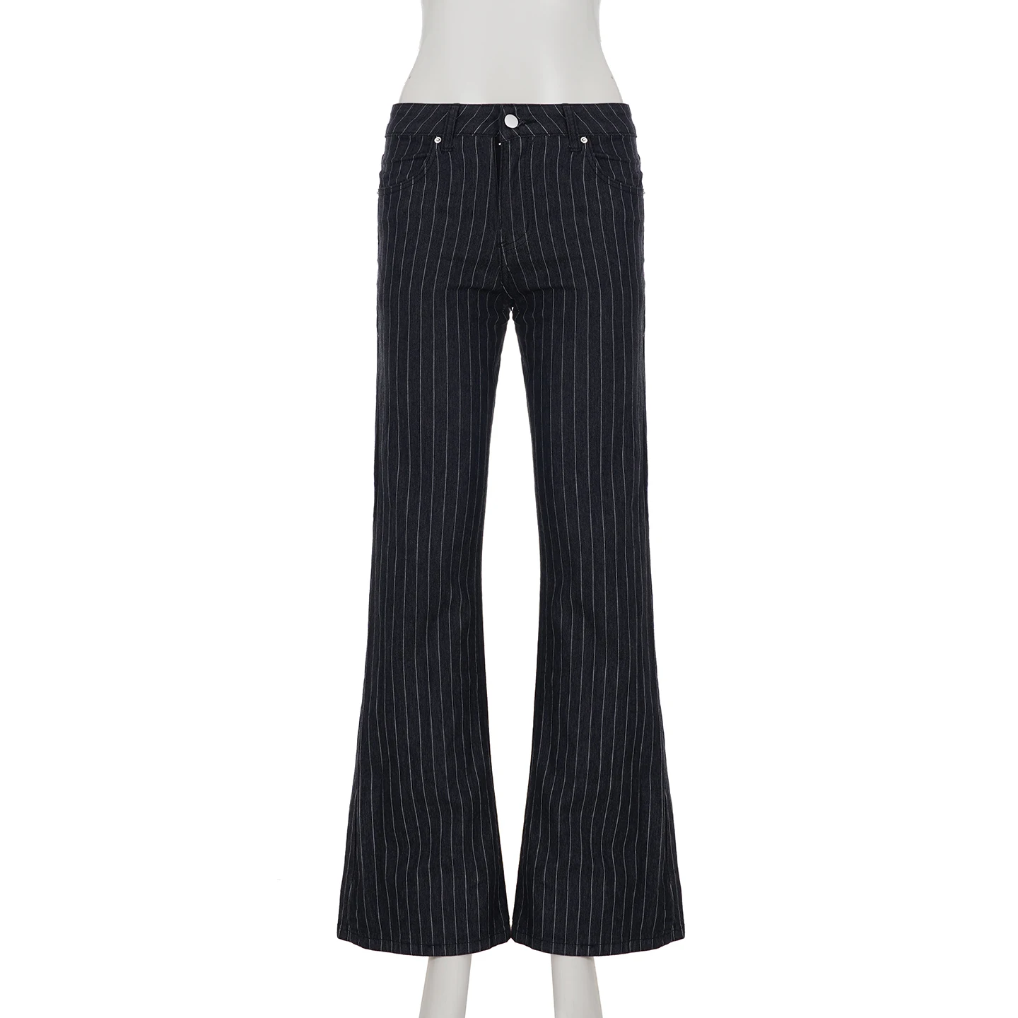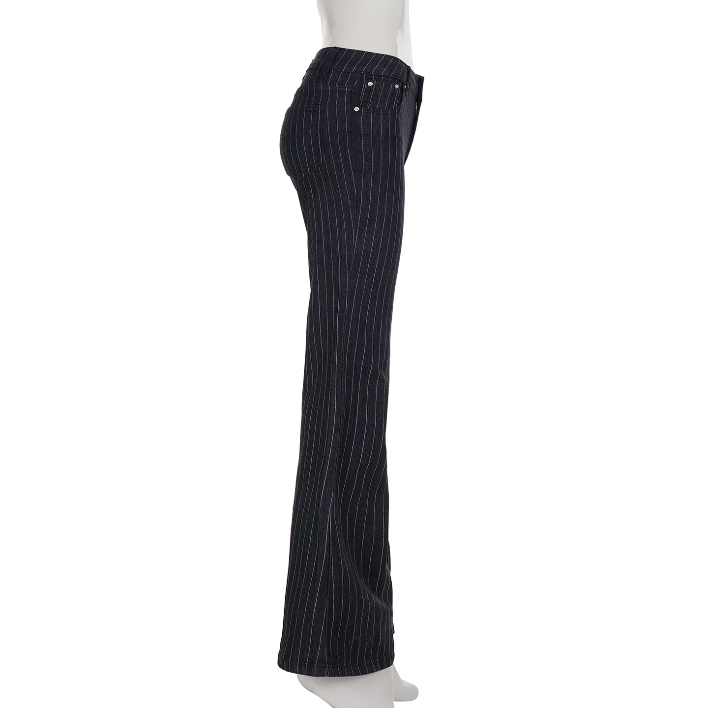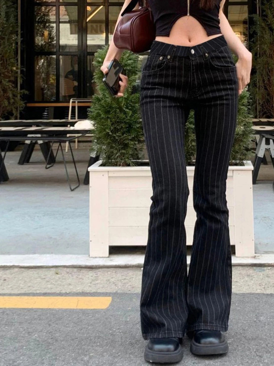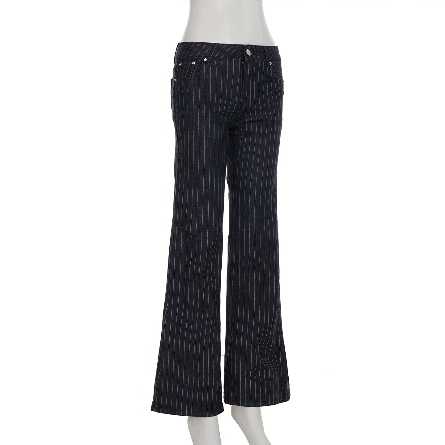 Cyflymder Low-Waist Slimming Bla Stripe Bell Bot Jeans Women's Faionable Versatile Denim Pants Streetwear Romore Hot Girl Outfit