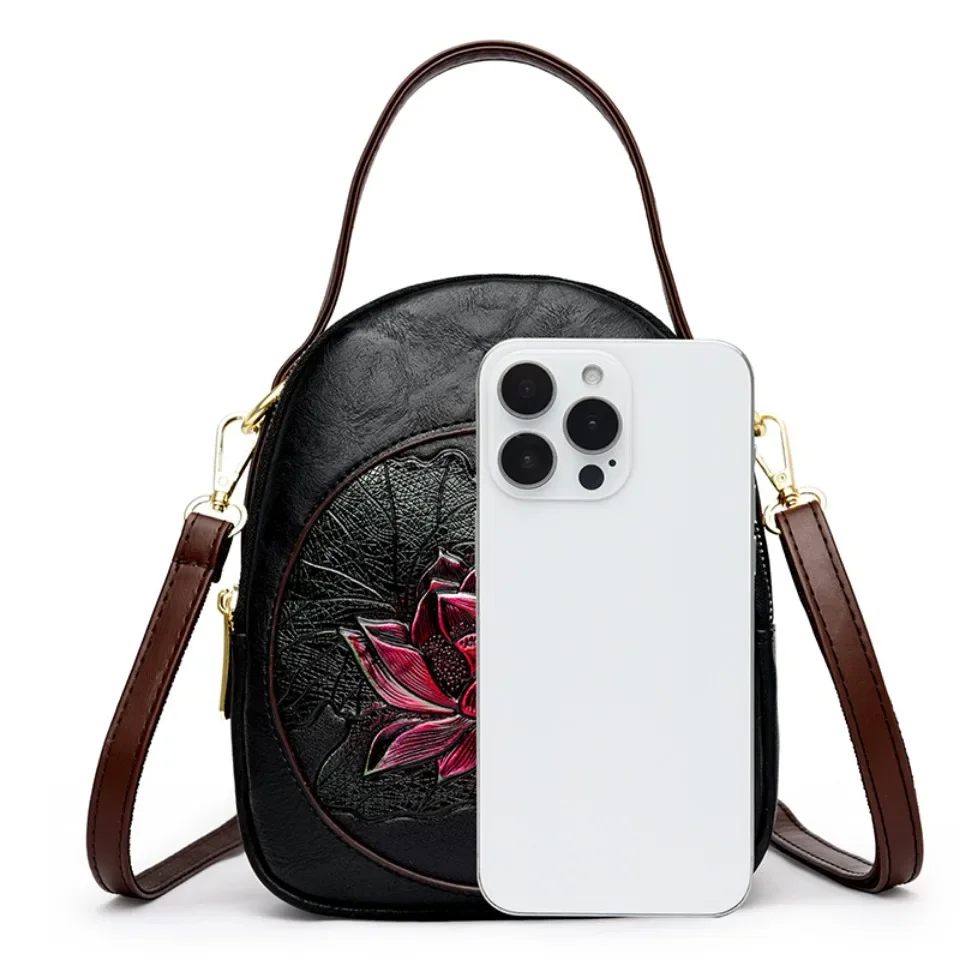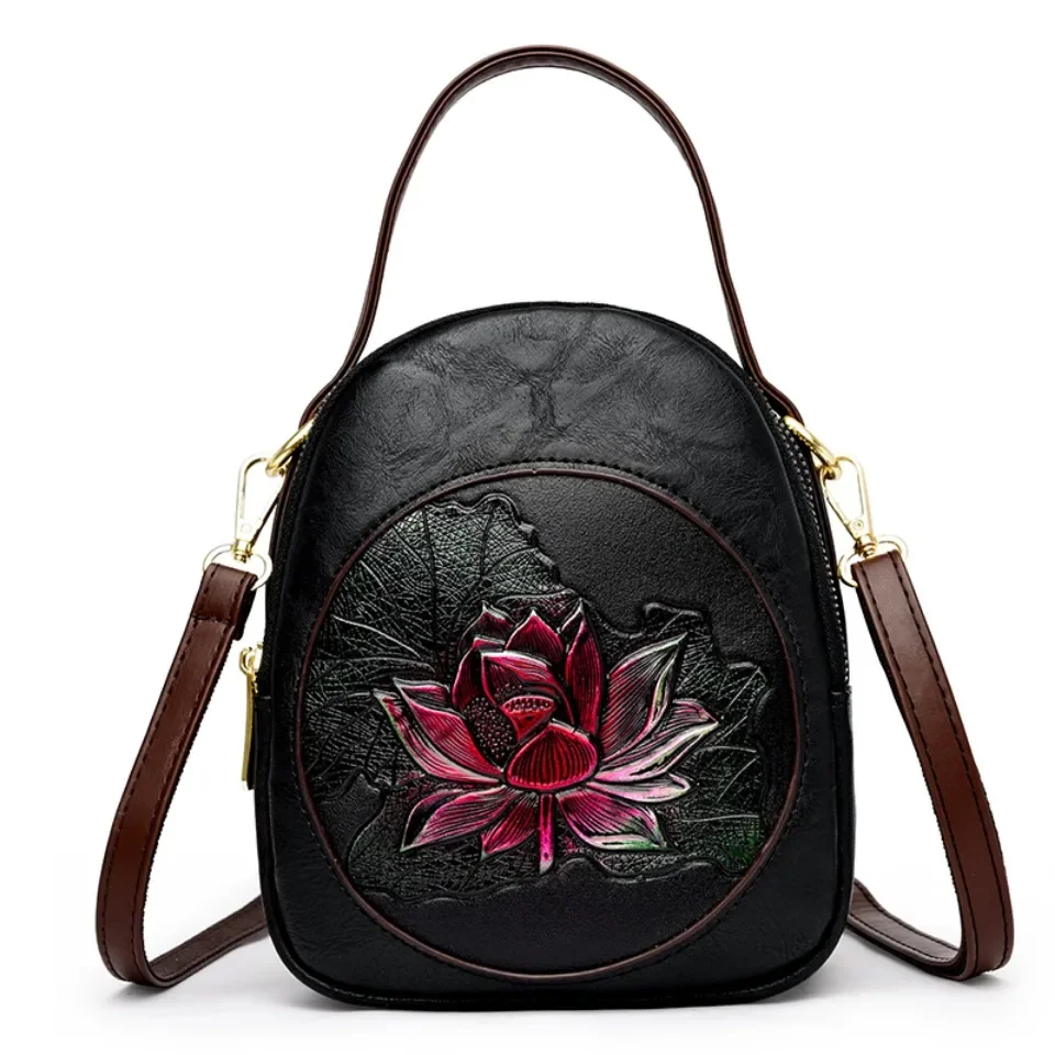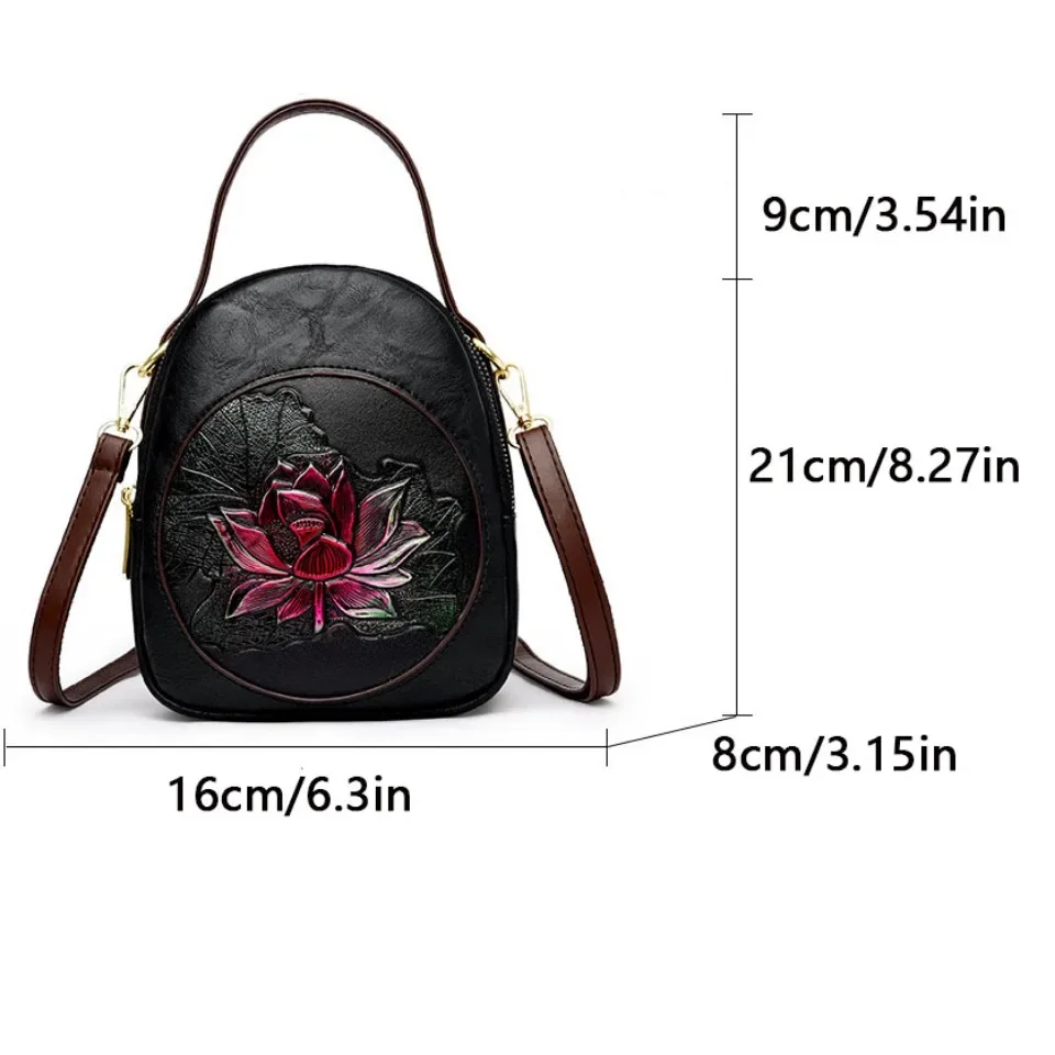 Cyflymder Luxury 3-Layer Pockets PU Leather Women's Leisure Shoulder Bag and Purses Fashionable Lotus Pattern Crossbody Bag Ladies Sac