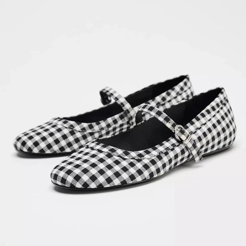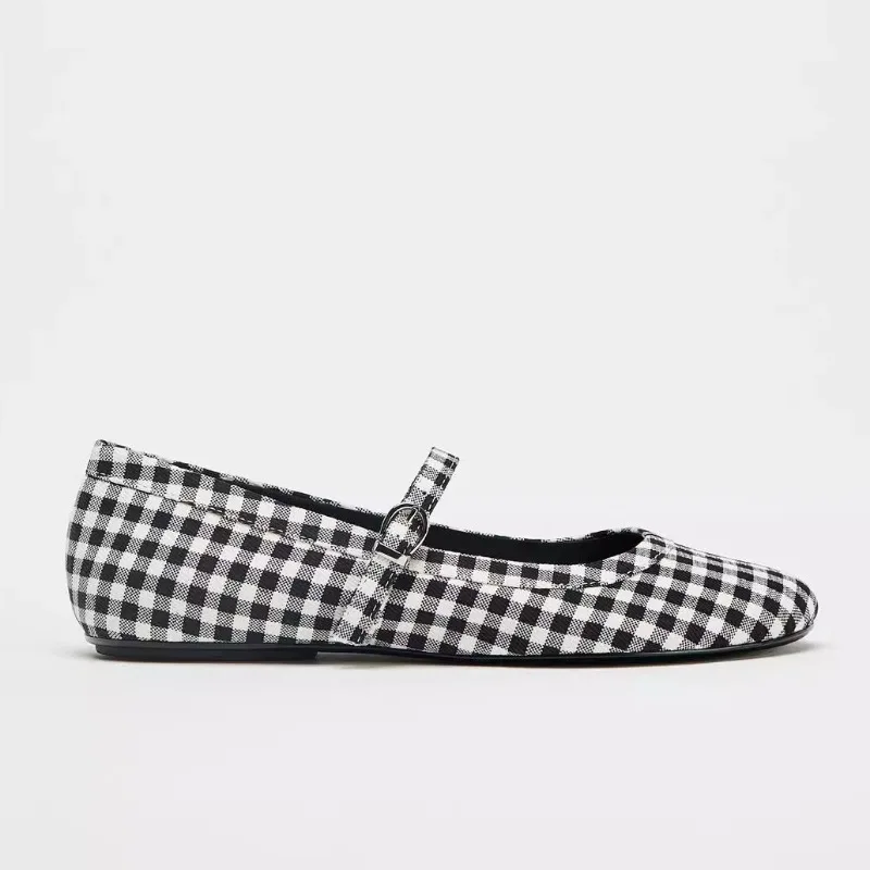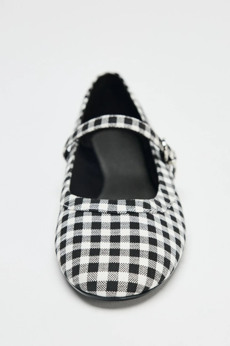 Cyflymder Luxury Designer Plaid Print Ballet Flats for Women Comfort Round Toe Buckle Soft Sole Mary Jane Shoes Elegant Banquet Party Shoe