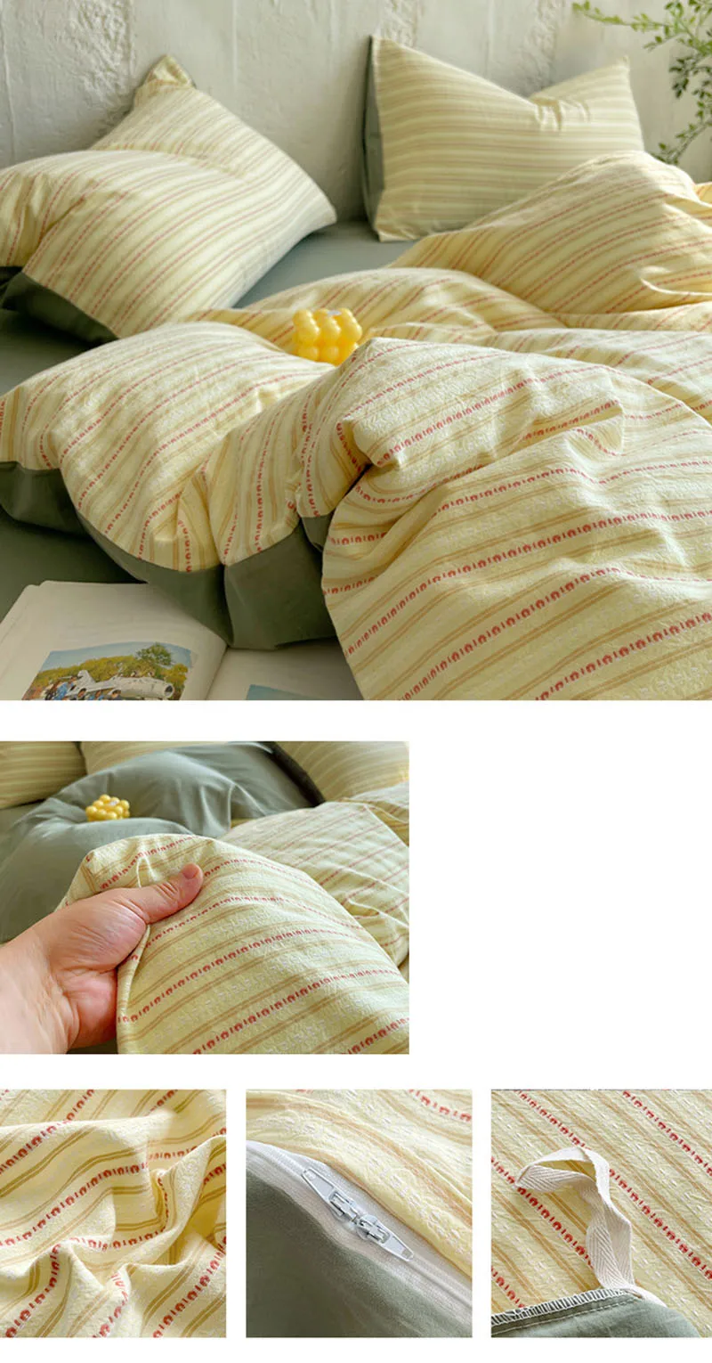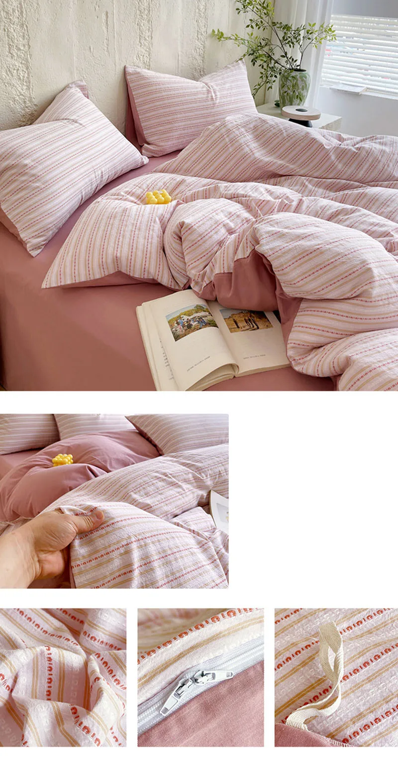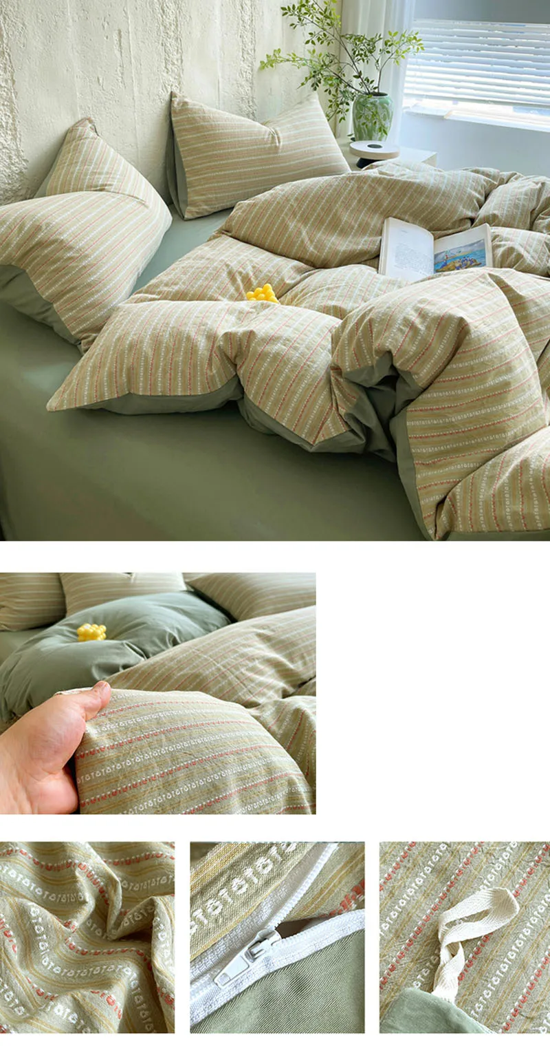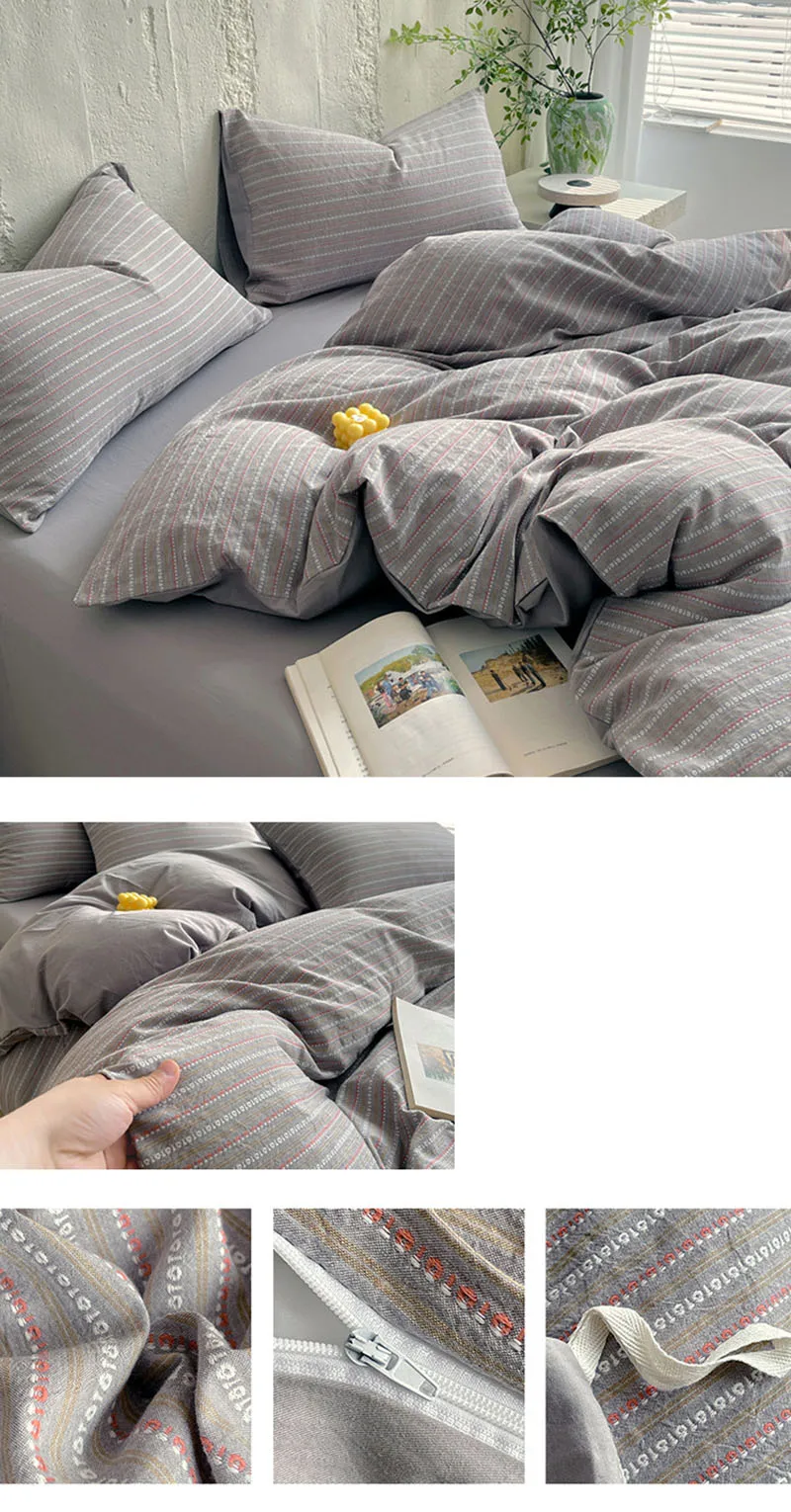 Cyflymder Luxury Pure Cotton Striped Jacquard Bedding Set High Quality Non Fading Ultra Soft Duvet Cover Kit Adult Home Decor for Bedrooms