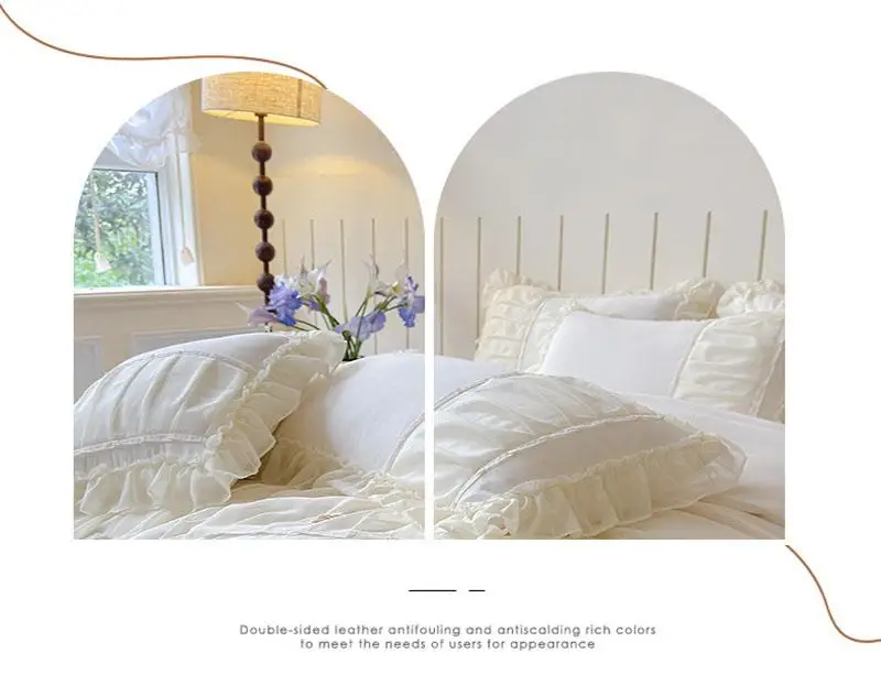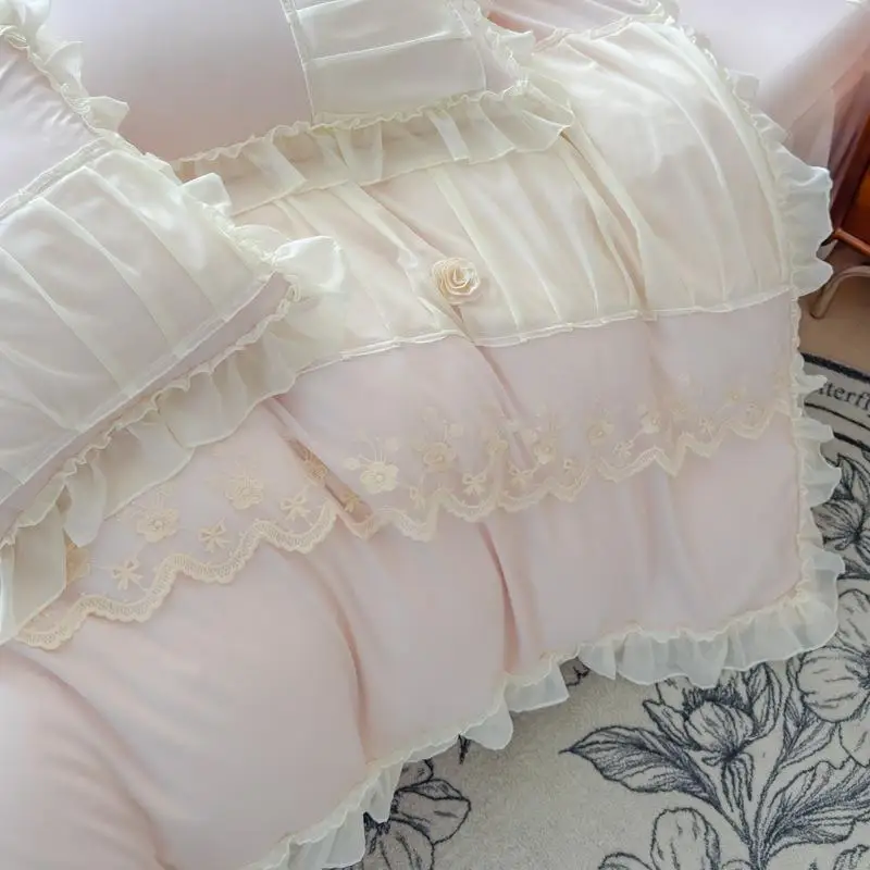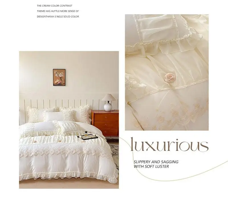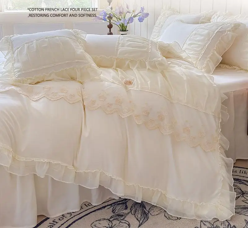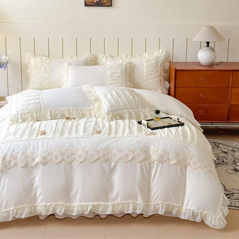 Cyflymder Luxury Solid Color Bed Skirt Bedding Sets with Lace Silky Breathable Bedclothes for Home All Seasons Single Double Bedspread Kit
