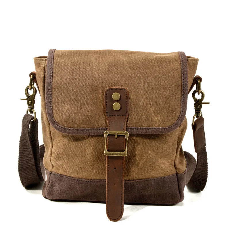 Cyflymder Men's Retro Crossbody Bag Waxed Canvas With Cowhide Leather Shoulder Bag Casual Outdoor Portable Travel Bag Boy Messenger Bags