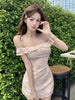 Cyflymder Mini Dresses Women Sexy Sweet Floral Slash Neck Off Shoulder Bow Lace Patchwork Vintage Elegant Dress Party Spring New