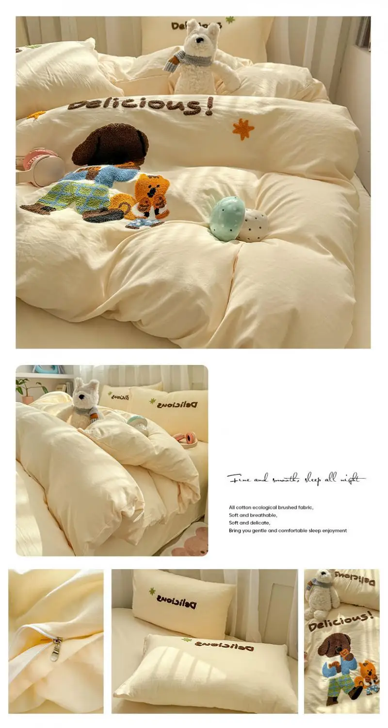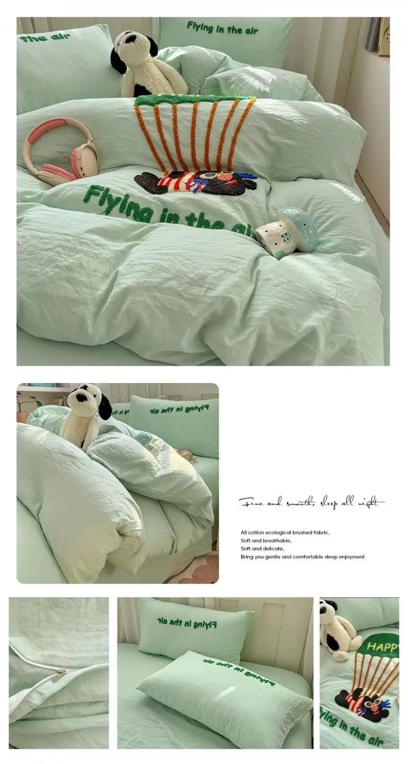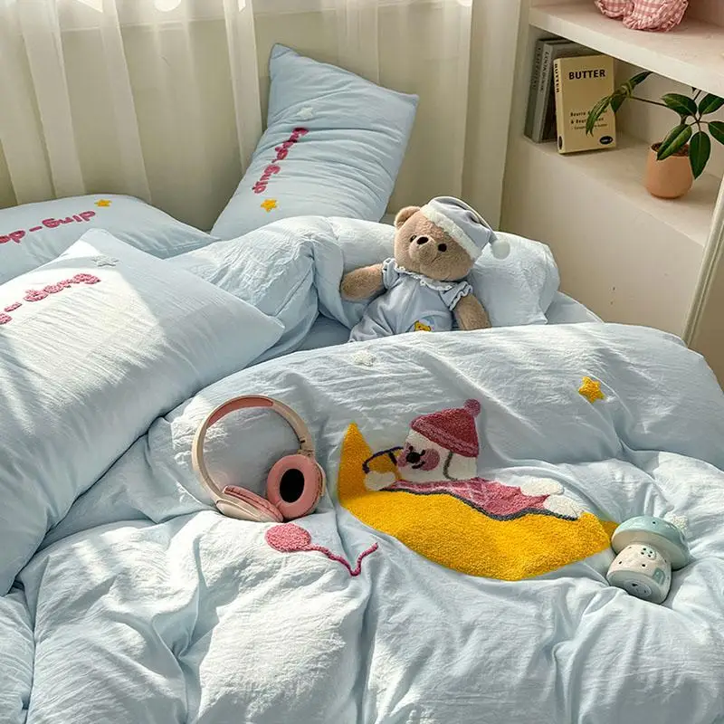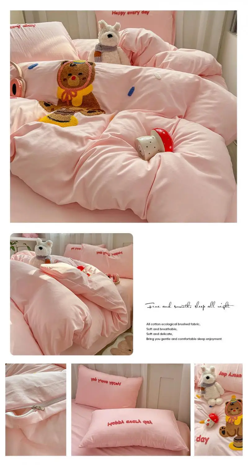 Cyflymder New Cartoon Embroidery Bed Sets Super Soft and Cute Bedding Set for Kids Adults Comforter Cover Kit for Single and Double