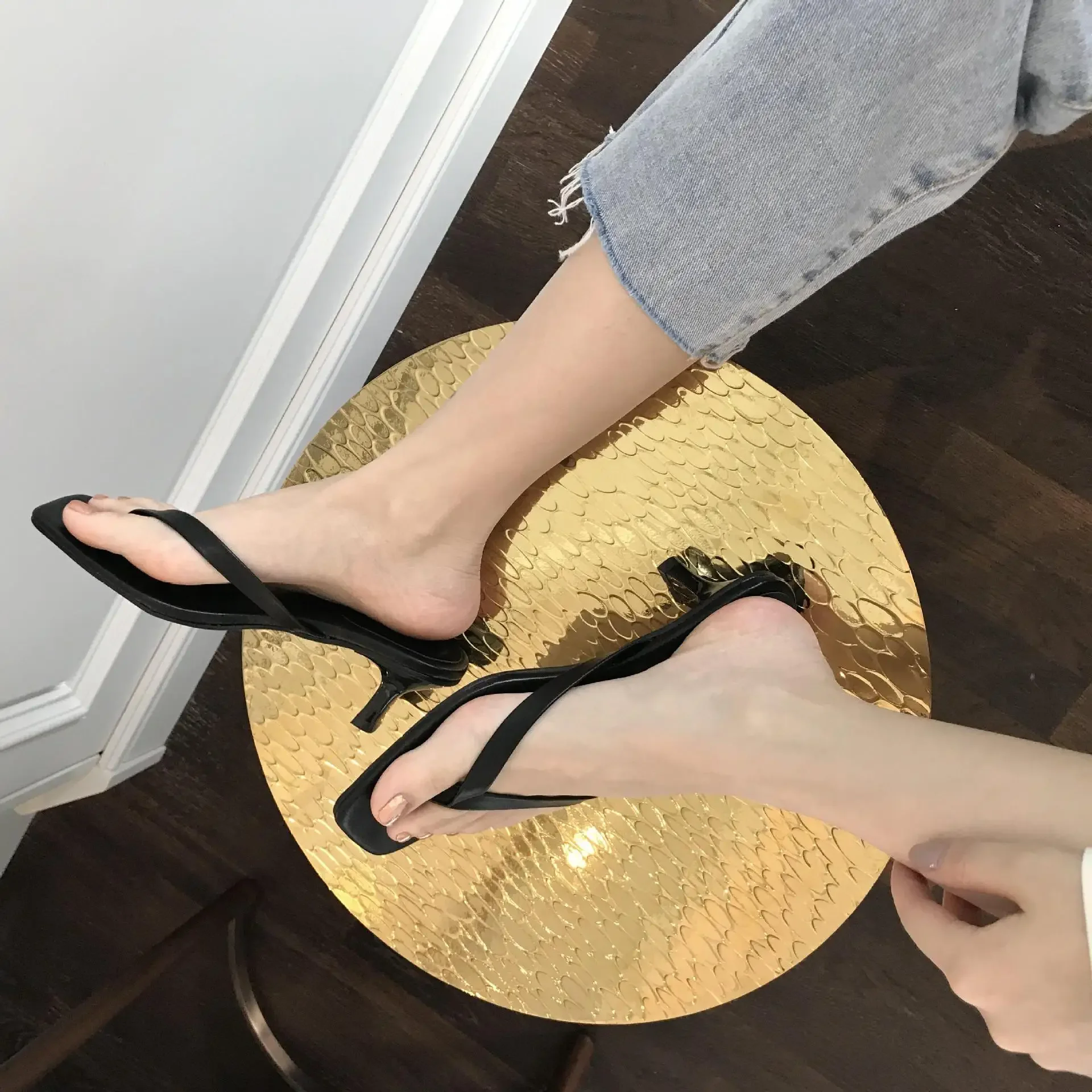 Cyflymder New High-Heeled Flip Flop Clip Toe Slippers Small Cat Paw Beach Slippers Fine Heel Slippers Women's Rubber Sole