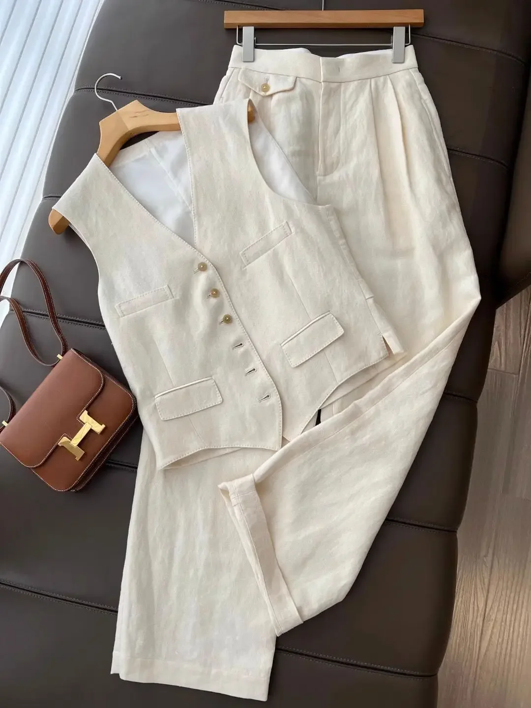 Cyflymder New Korean style fashion design temperament vest wide-leg pants two-piece suit