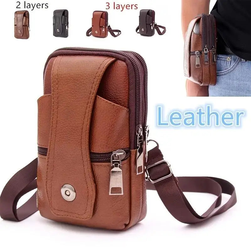 Cyflymder New Practical Fashion Men's Leather Waist Bag Multifunction Fanny Pack, Large Capacity Belt with Shoulder Strap