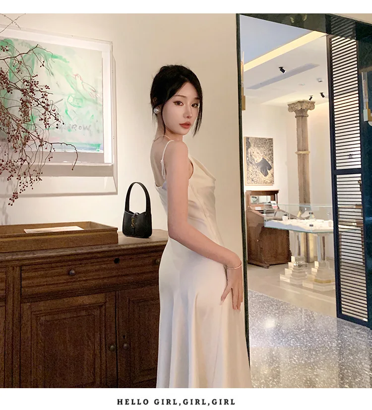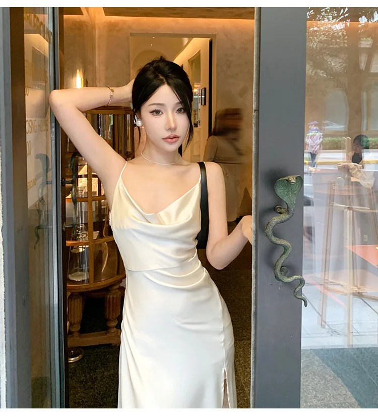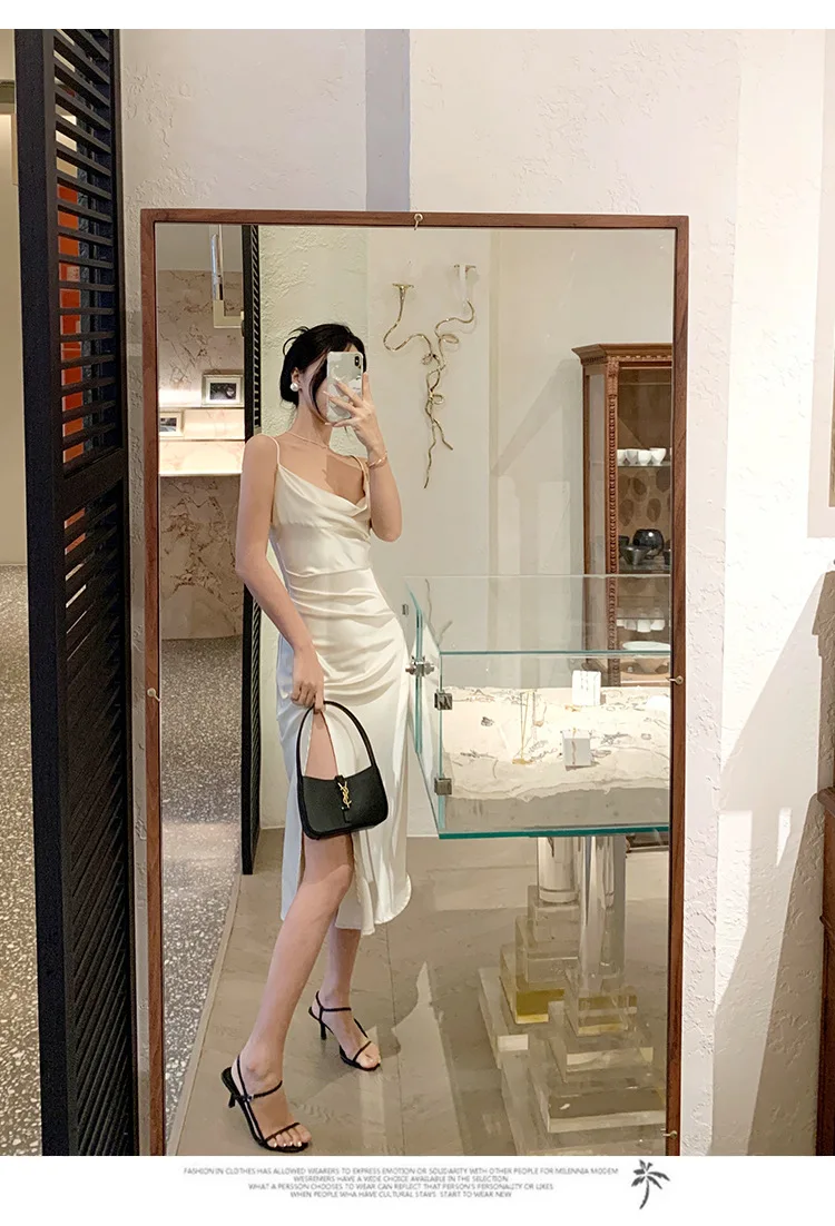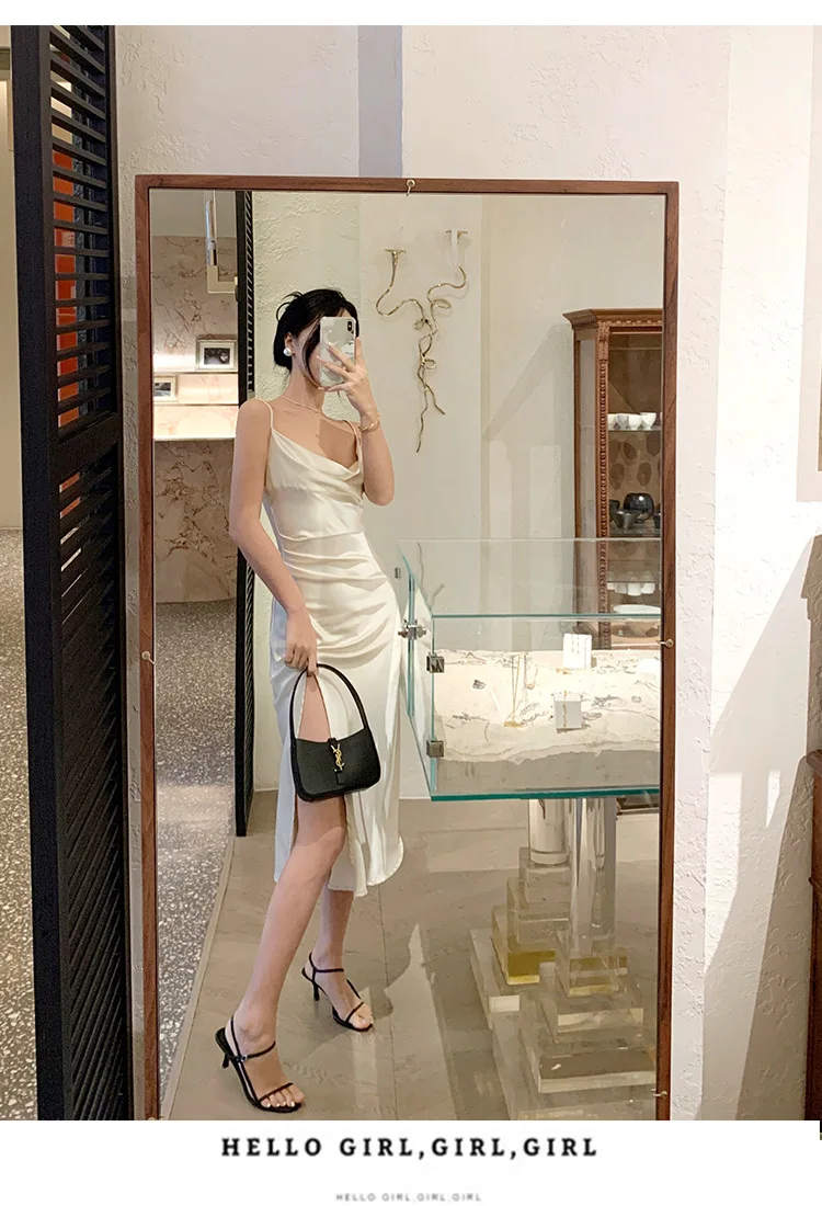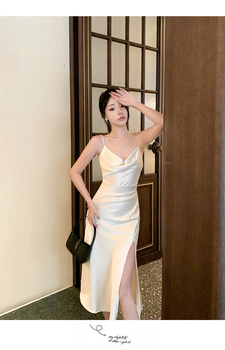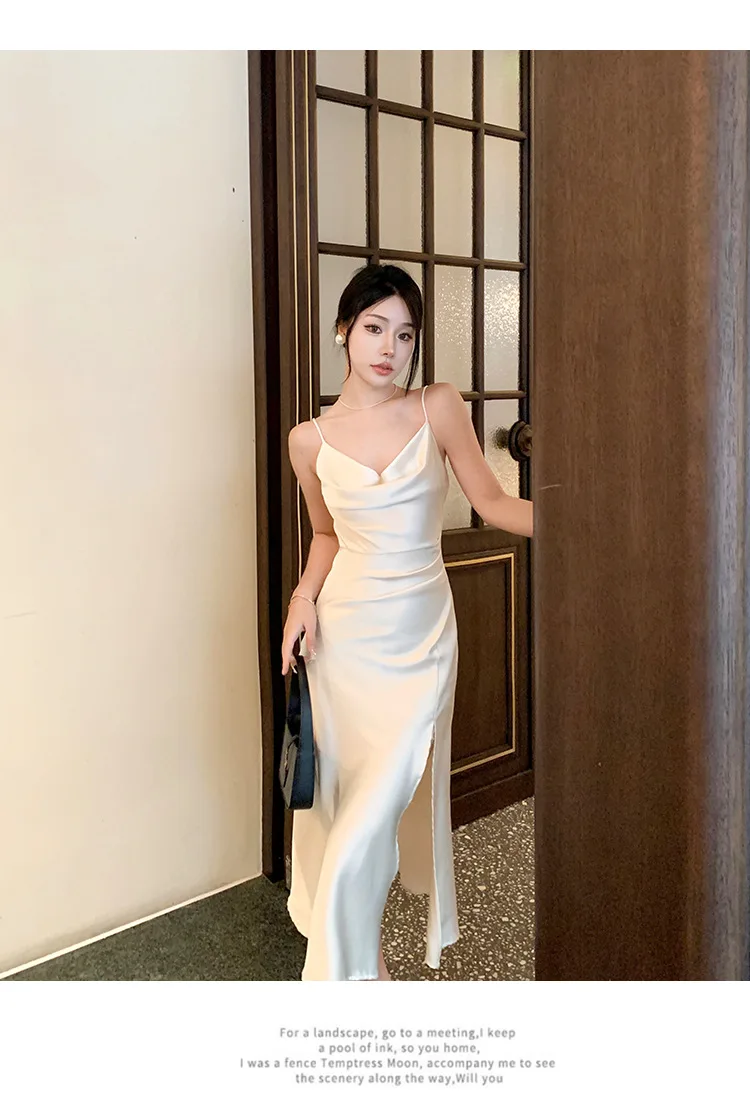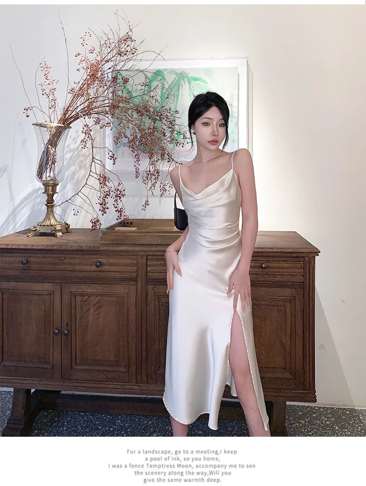 Cyflymder New Satin Strap Dress Female Split Party Cocktail Dress vestido corto blanco para boda civil robe maxi elegante