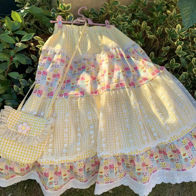 Cyflymder New Spliced print Loose Summer Design Cake High Waist Floral Retro Skirt Color Block