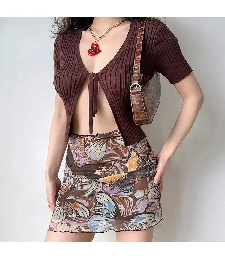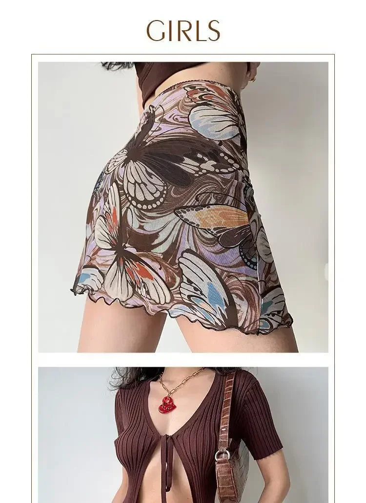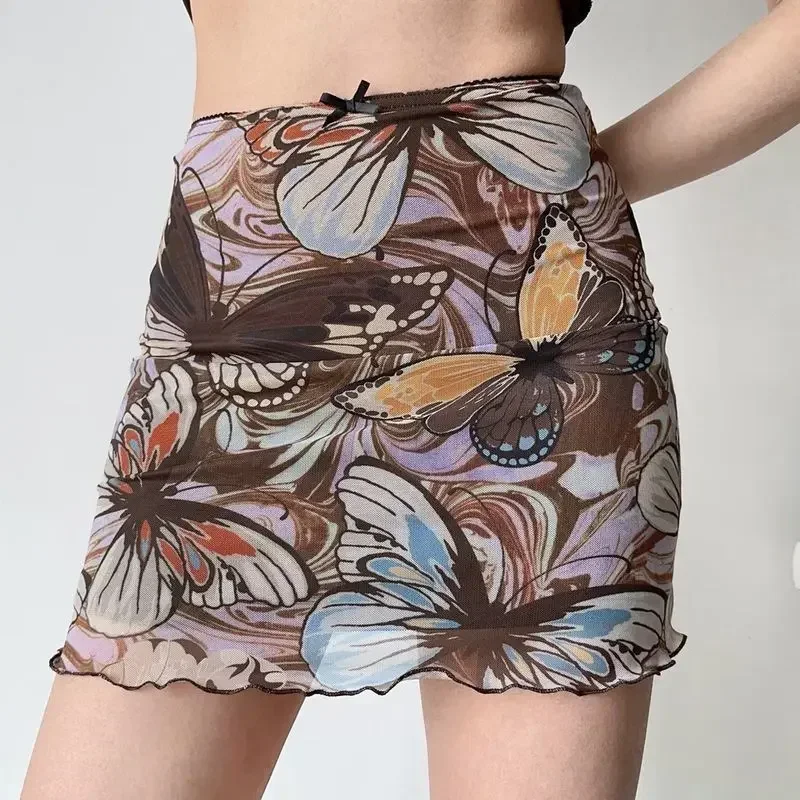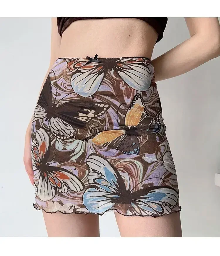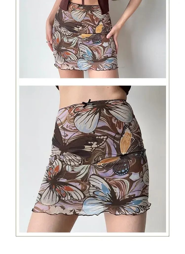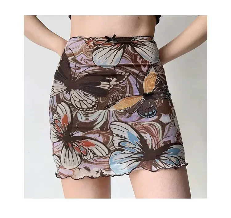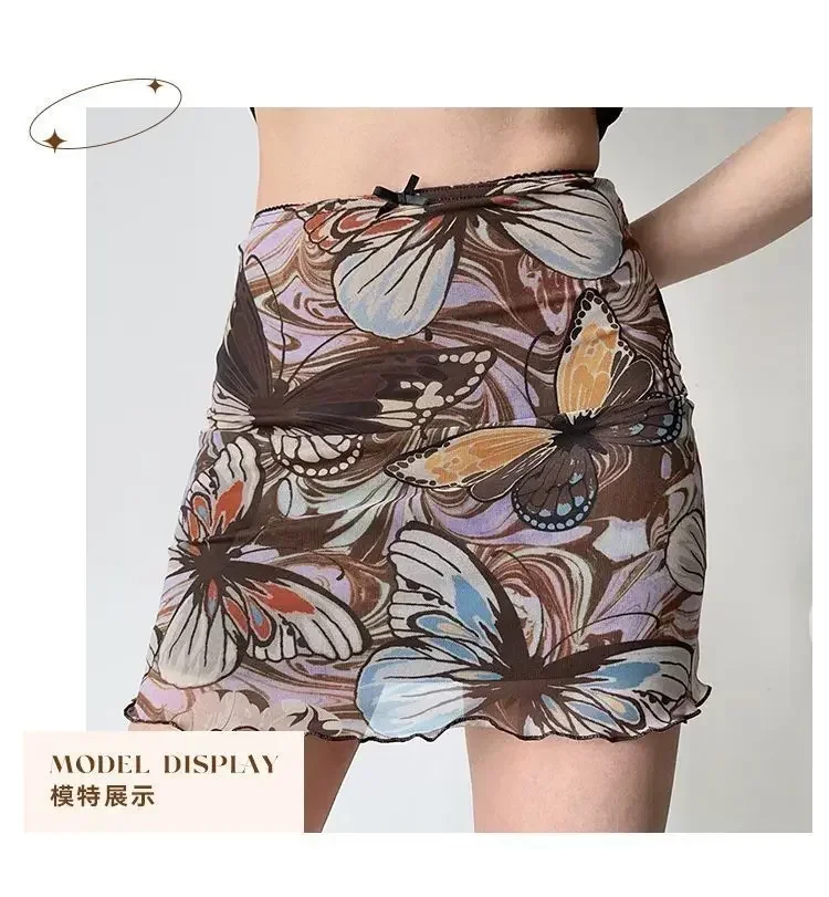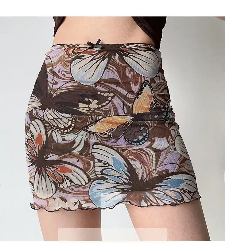 Cyflymder New Summer American Retro Printed Mesh High-waisted Skirt for Women's Fashionable Slim Hip-packing Skirt