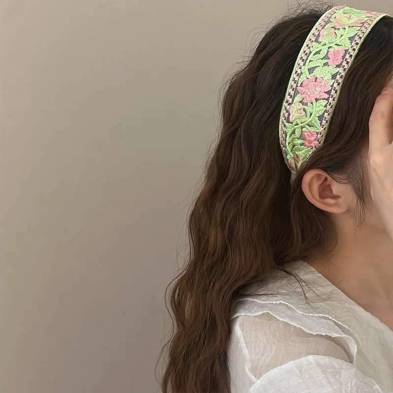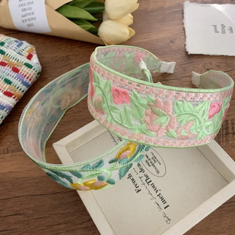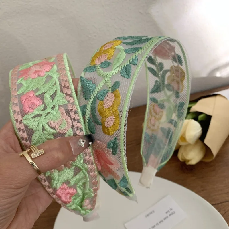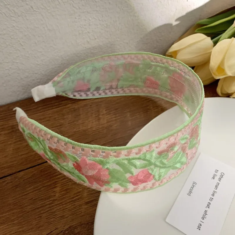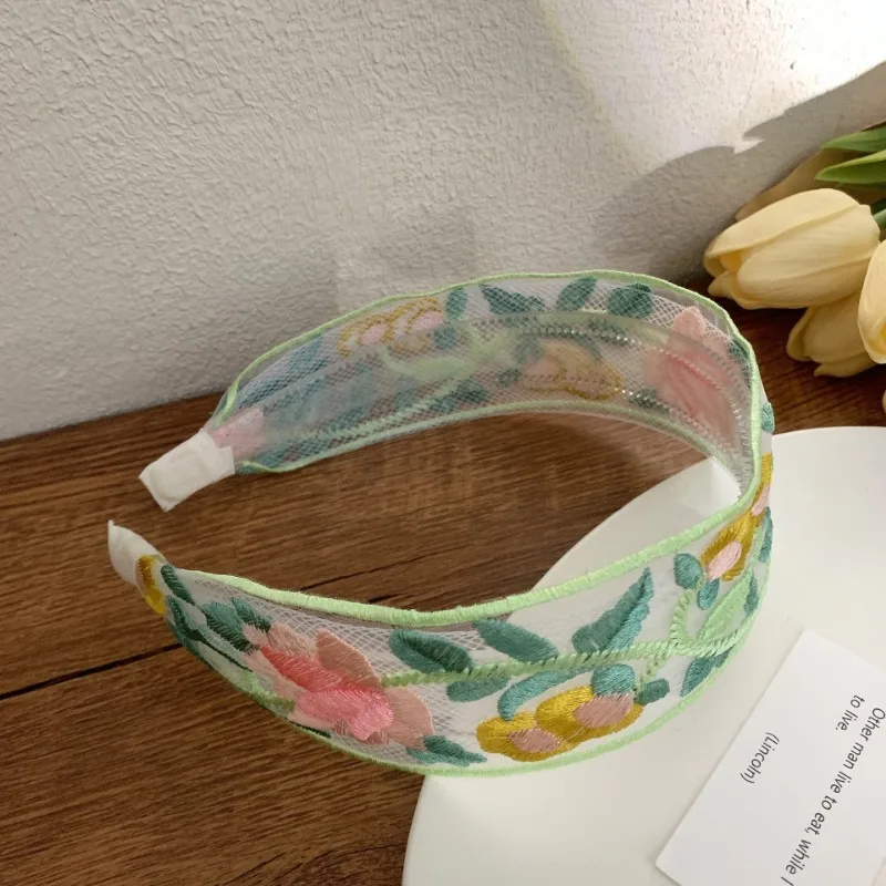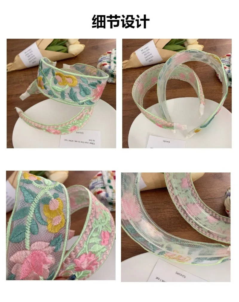 Cyflymder New Summer French Embroidery Rose Floral Hairband Sweet Lace Wide-brimmed Headbands Headwear for Women Girl Hair Accessories
