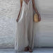 Cyflymder New Summer Solid Color Loose Evening Dress Elegant V-neck Linen Vacation Style Dress Fashion Ruffles Sleeveless Long Sling Dress