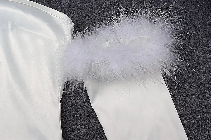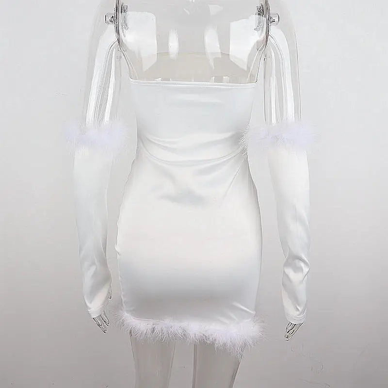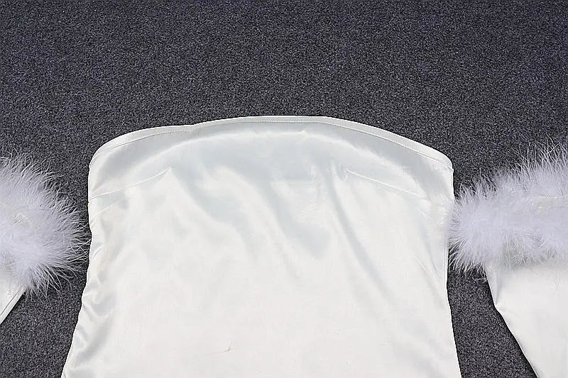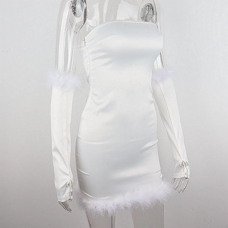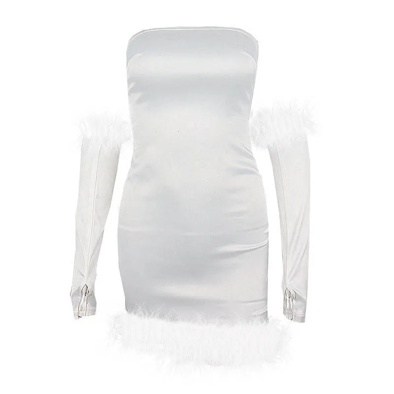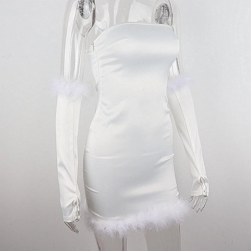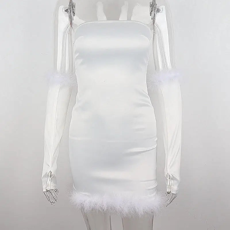 Cyflymder New Trendy Skirt Set For Christmas New Year Midnight Carnival Party Women Off-shoulder Backless Bodycon Dress And Sleeves Gloves