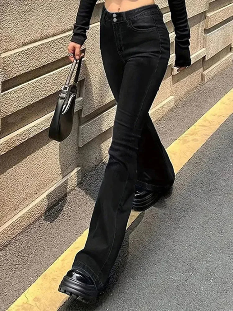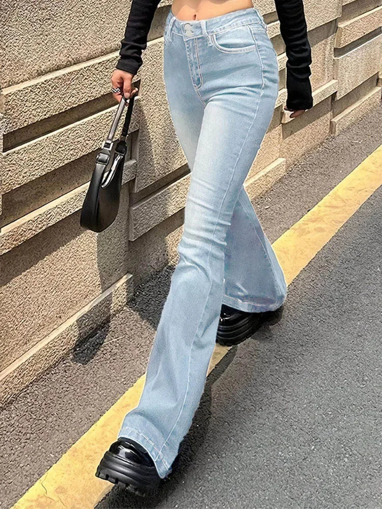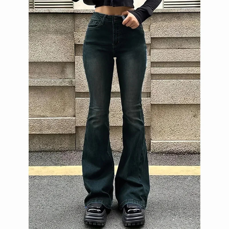 Cyflymder New Women Stretchy Flared Jeans Lady High Waist Denim Jeans Pants Luxury Designer Classic Bell Bottoms Long Trousers