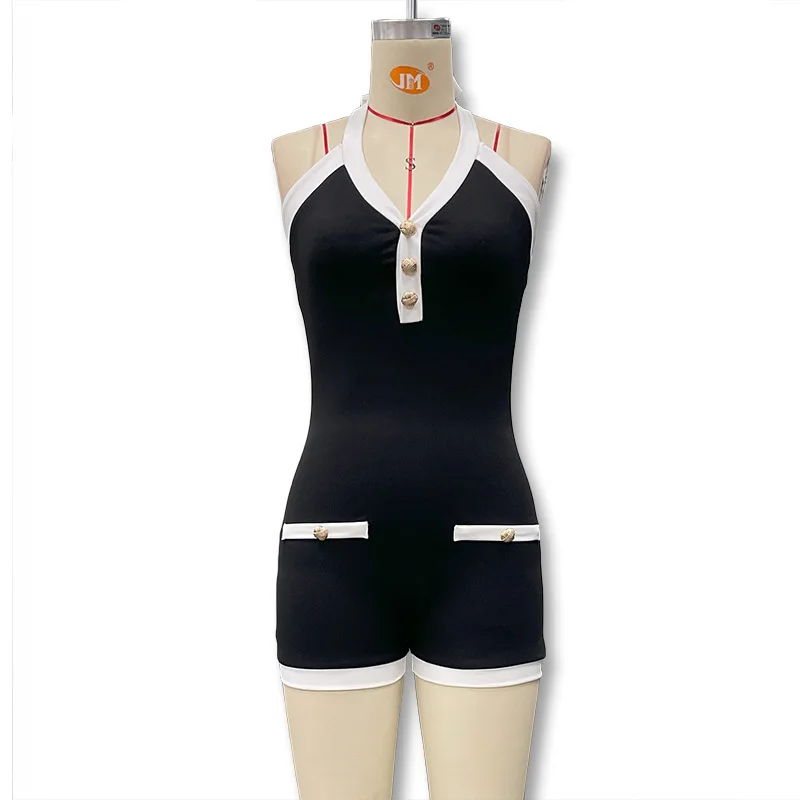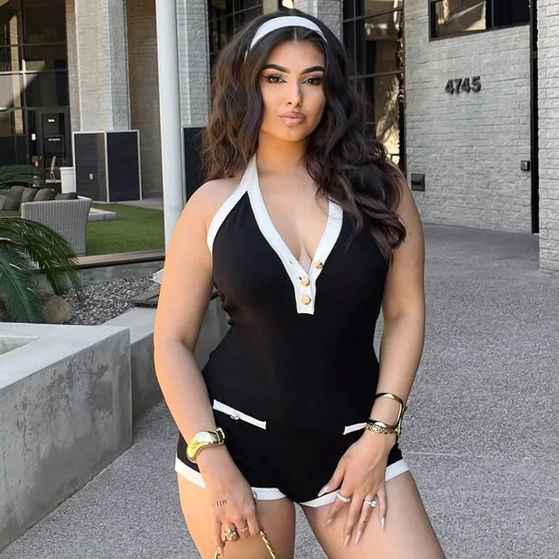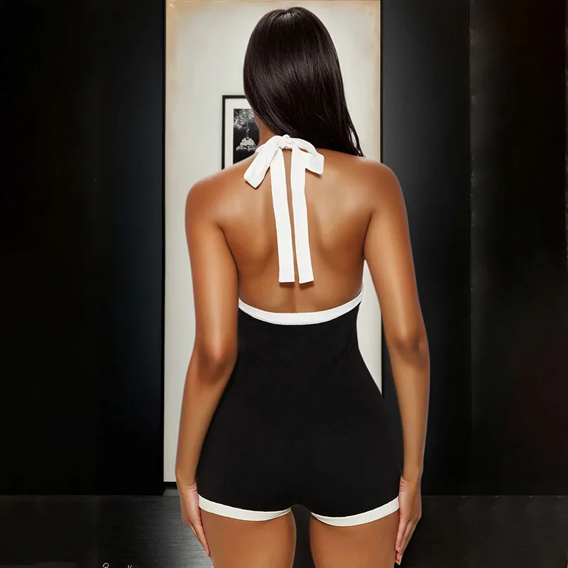 Cyflymder New Women's Faion Bla White Color Blo Sexy V-ne Hanging Ne Bal Ultra-ort One-piece Pants High Waist Polo