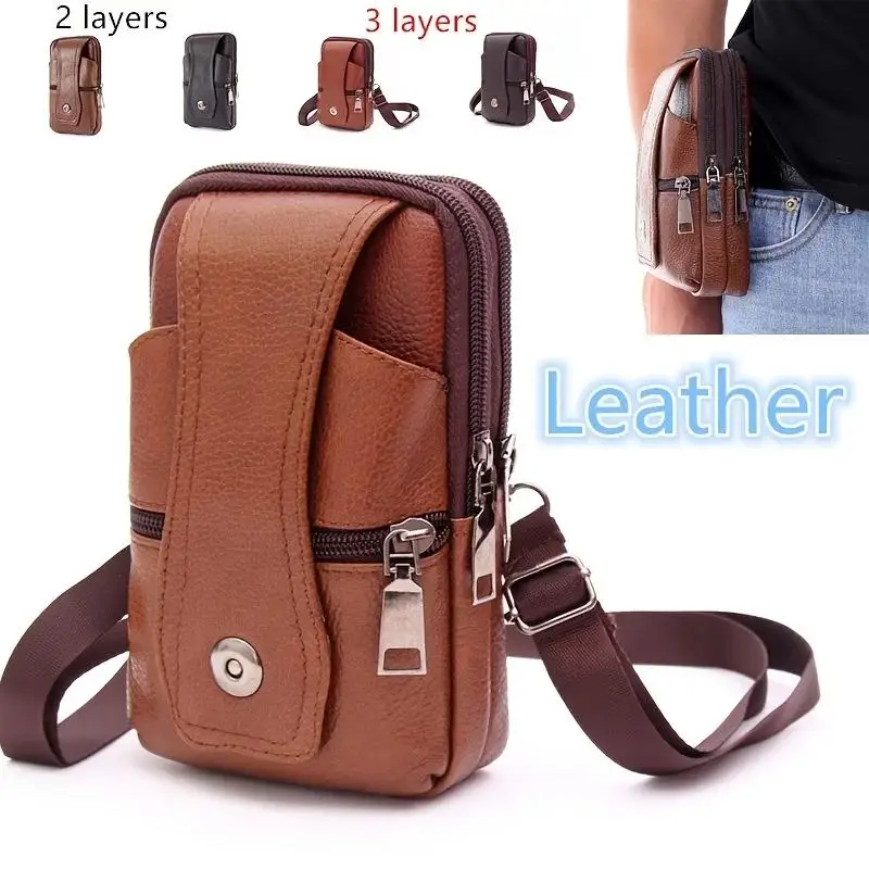 Cyflymder NewPractical 1pc Fashion Men's PU Leather Fanny Pack, Multifunctional Pack