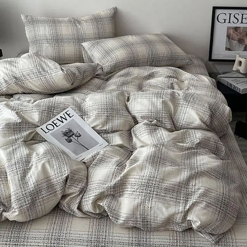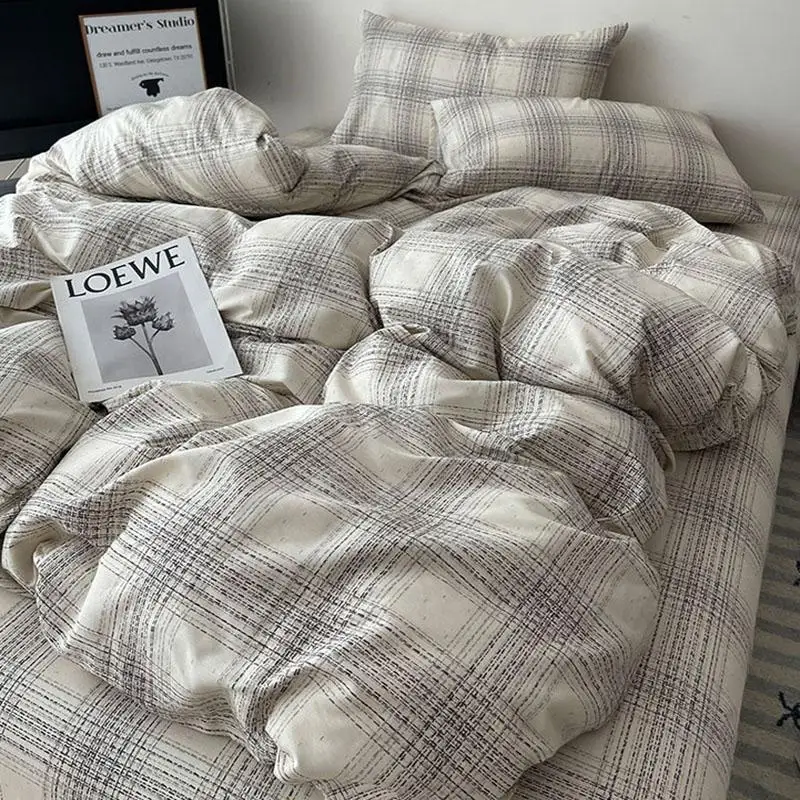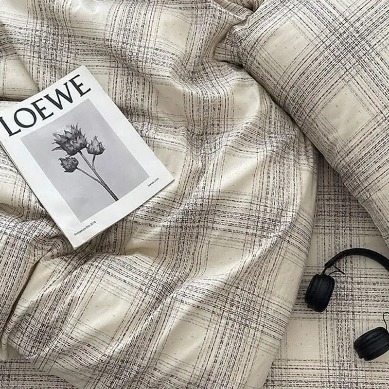 Cyflymder Nordic 100% Cotton Geometric Printing Bedding Sets Super Soft Quilt Set for Single Double Size Simple Cozy Bedrooms Bed Liens