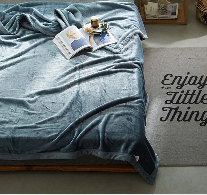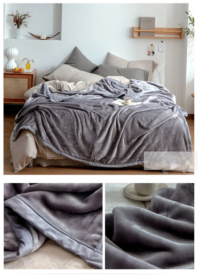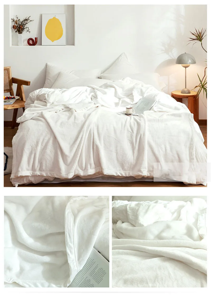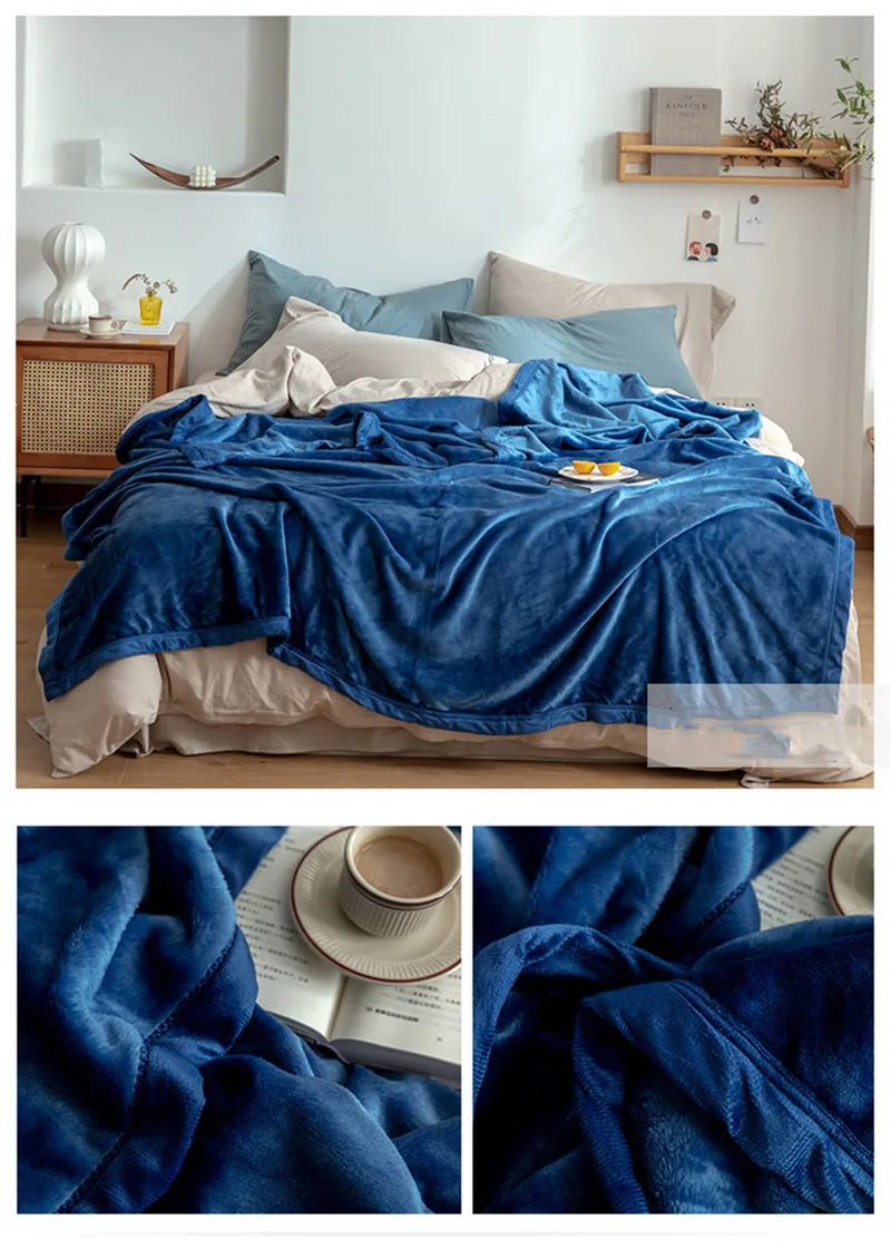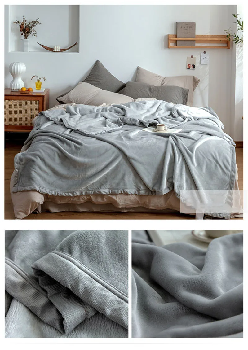 Cyflymder Nordic Solid Flannel Blankets Warm Multifunctional Sleeping Blanket for Office Home Queen King Size Bedspread for All Seasons