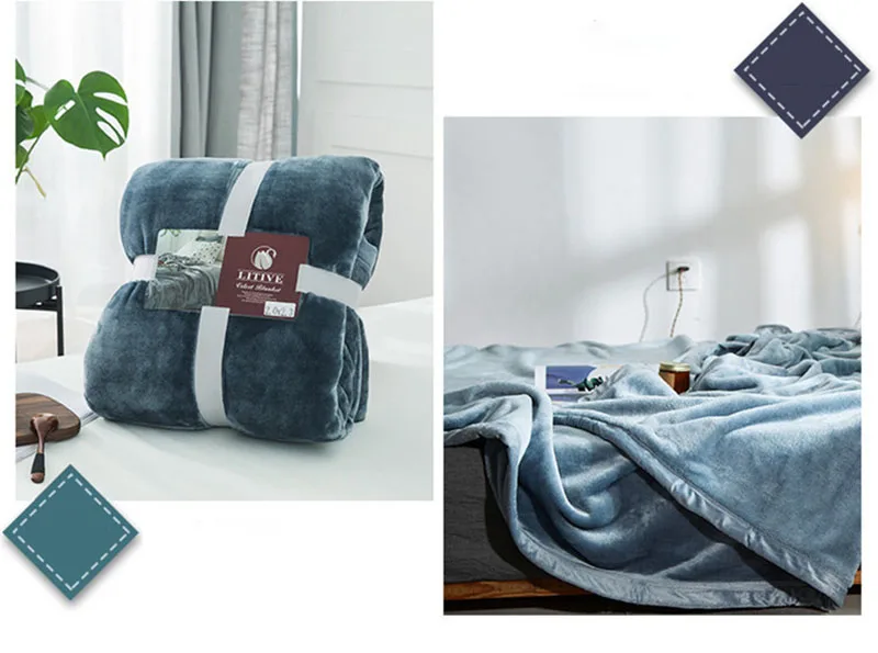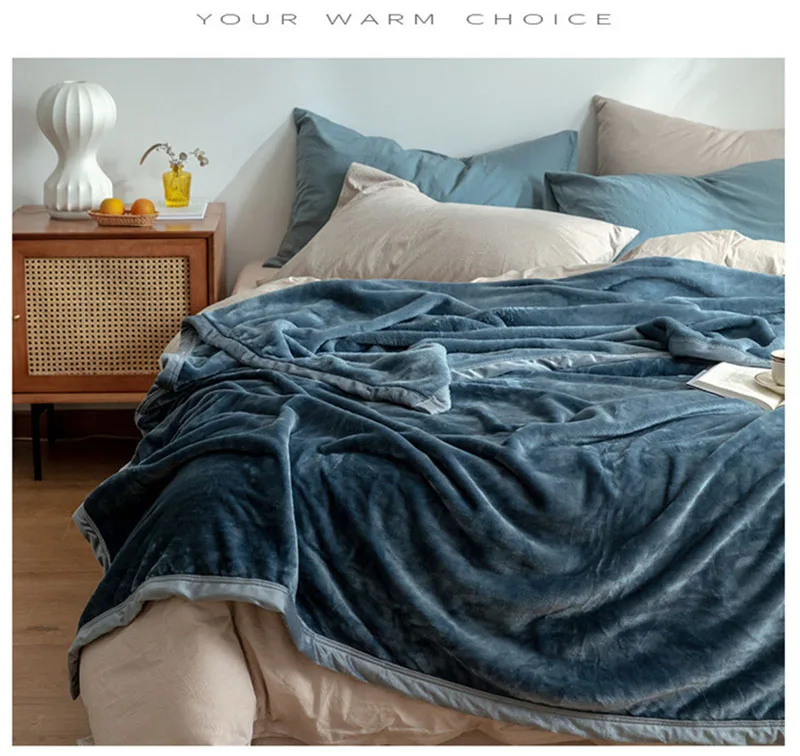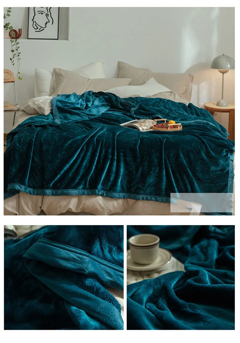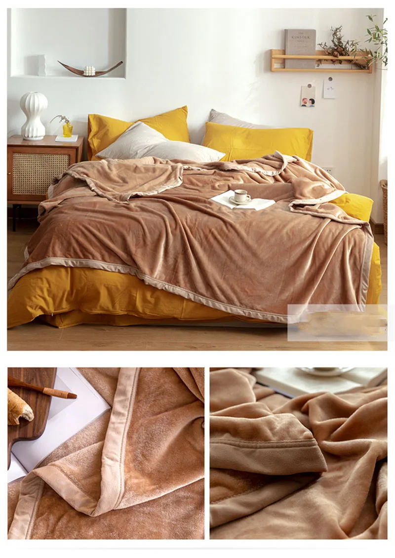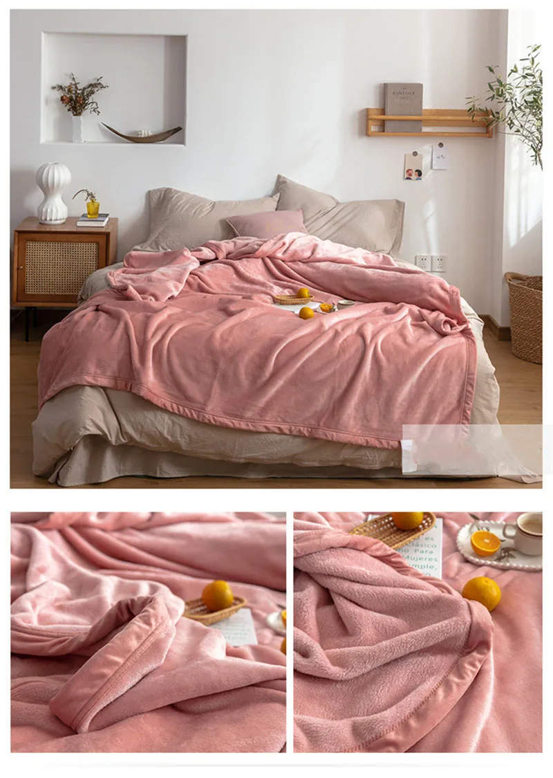 Cyflymder Nordic Solid Flannel Blankets Warm Multifunctional Sleeping Blanket for Office Home Queen King Size Bedspread for All Seasons