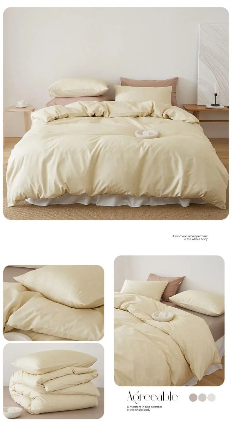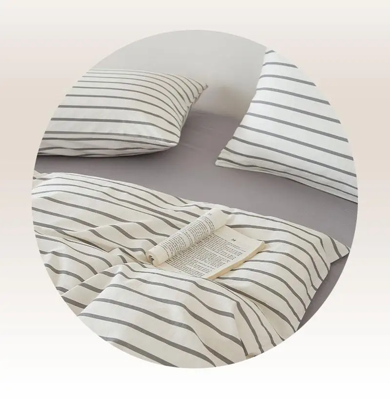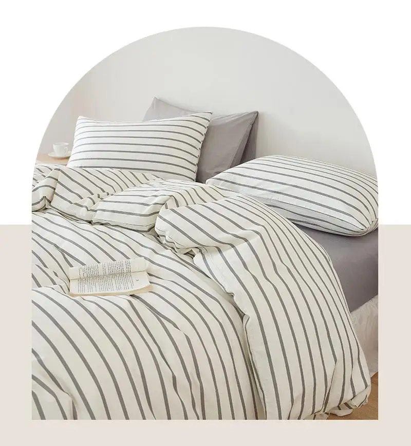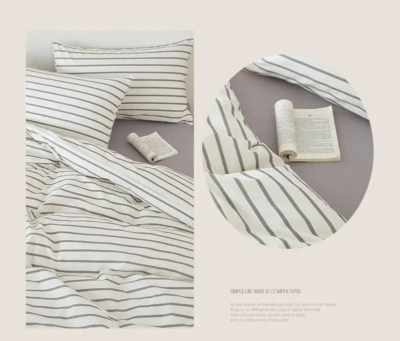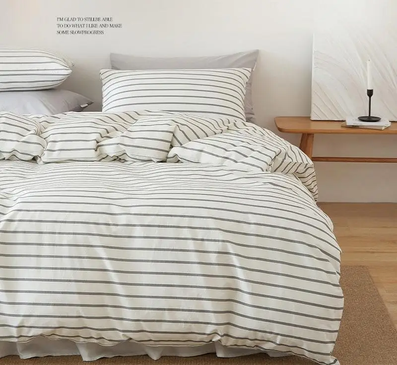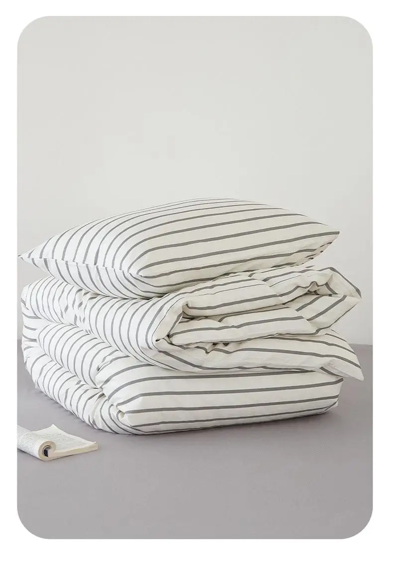 Cyflymder Nordic Style Pure Cotton Solid Bedding Sets Luxury Skin-Friendly Duvet Cover Fitted Sheet Pillowcase Single Queen Size Quilt Set
