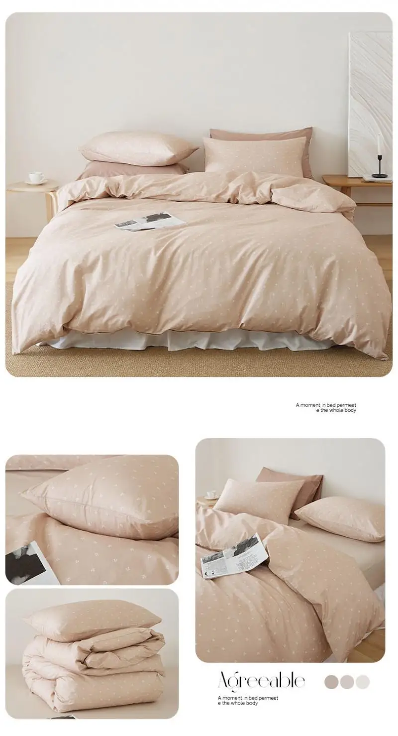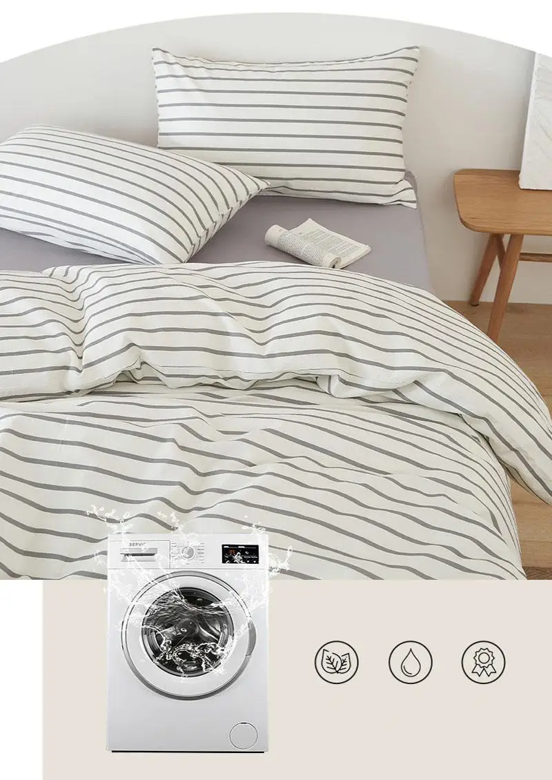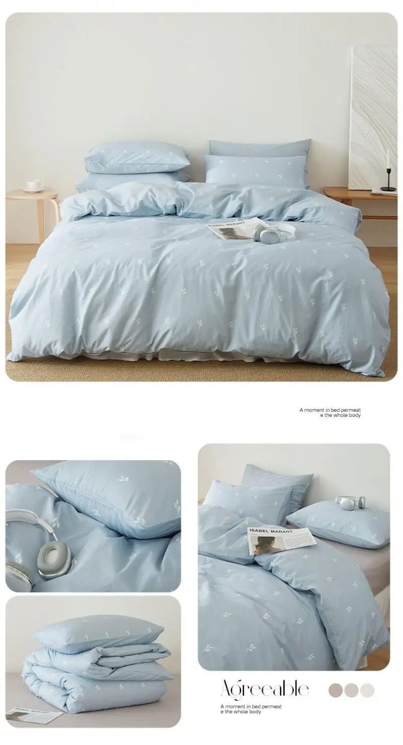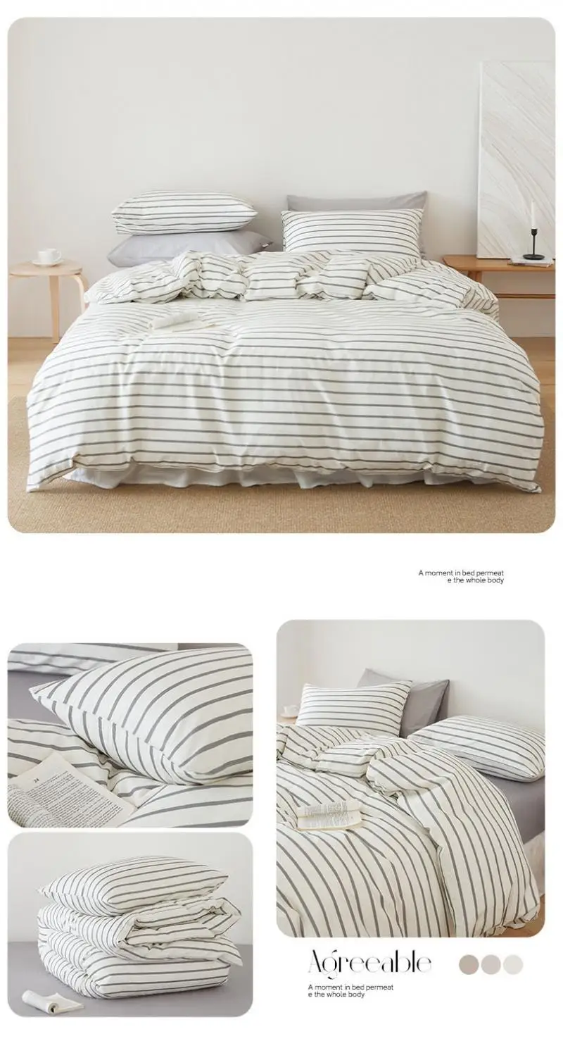 Cyflymder Nordic Style Pure Cotton Solid Bedding Sets Luxury Skin-Friendly Duvet Cover Fitted Sheet Pillowcase Single Queen Size Quilt Set