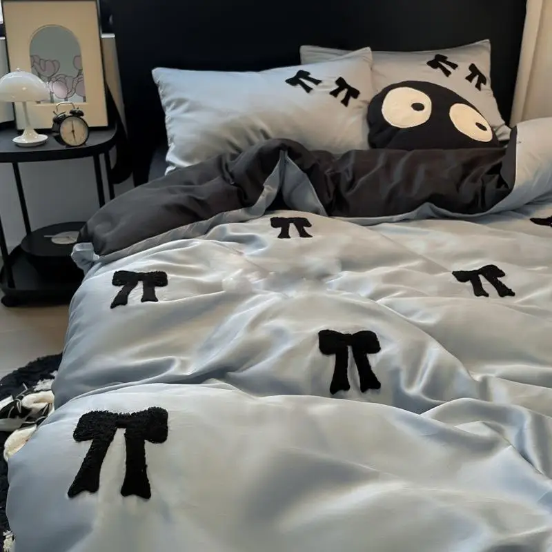 Cyflymder Nordic Style Rayon Silk Bow Embroidery Bedding Sets Ice Silk Duvet Covers Bed Sheet Pillowcases Queen/king Bedclothes for Summer