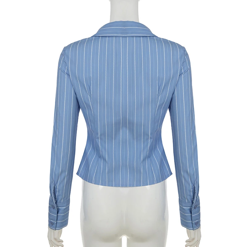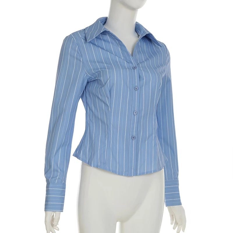 Cyflymder Office Ladies Casual Striped Blouse Elegant Basic Turn-Down Collar Long Sleeve Shirts Women Spring Autumn Streetwear