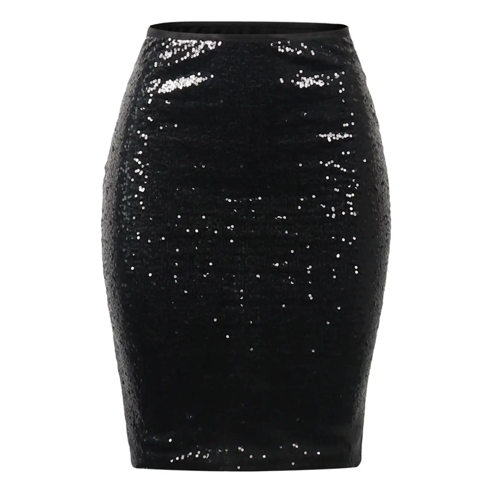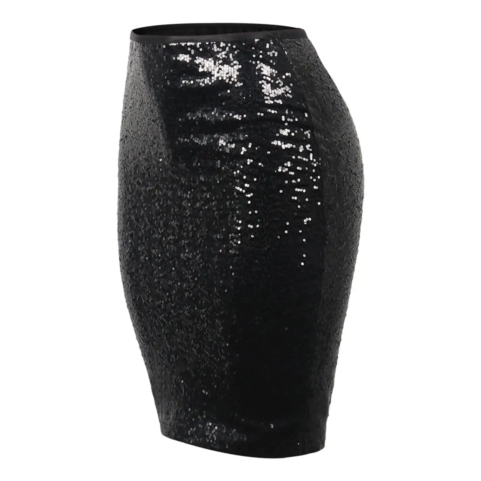 Cyflymder Office Lady Mid Length Skirt Black Glitter Sequined Wrapped Hip Bodycon Pencil Skirt Women's High Waist Casual Party Skirt