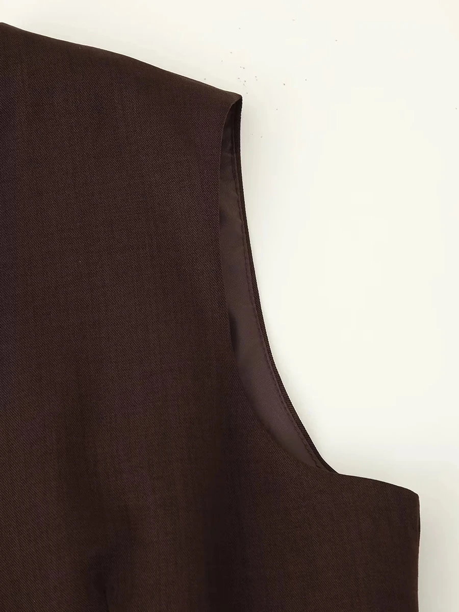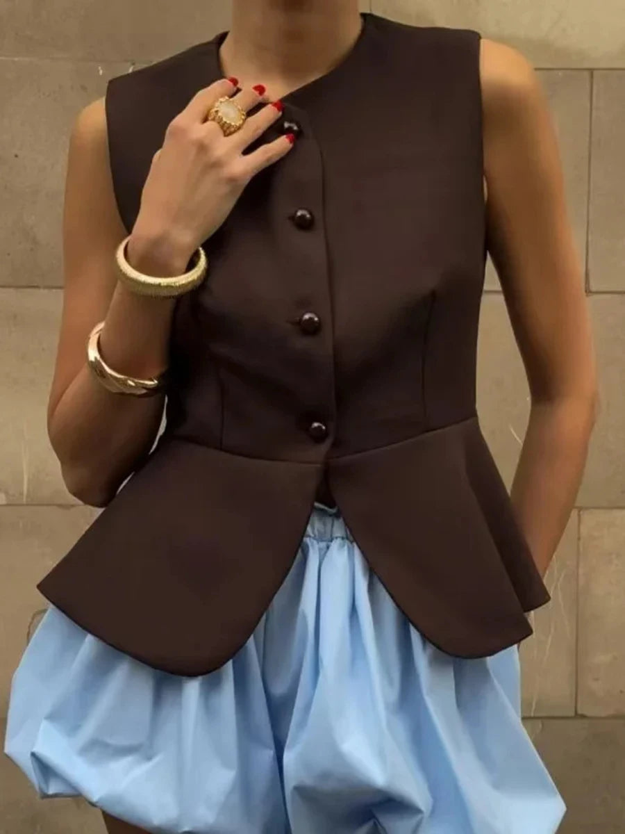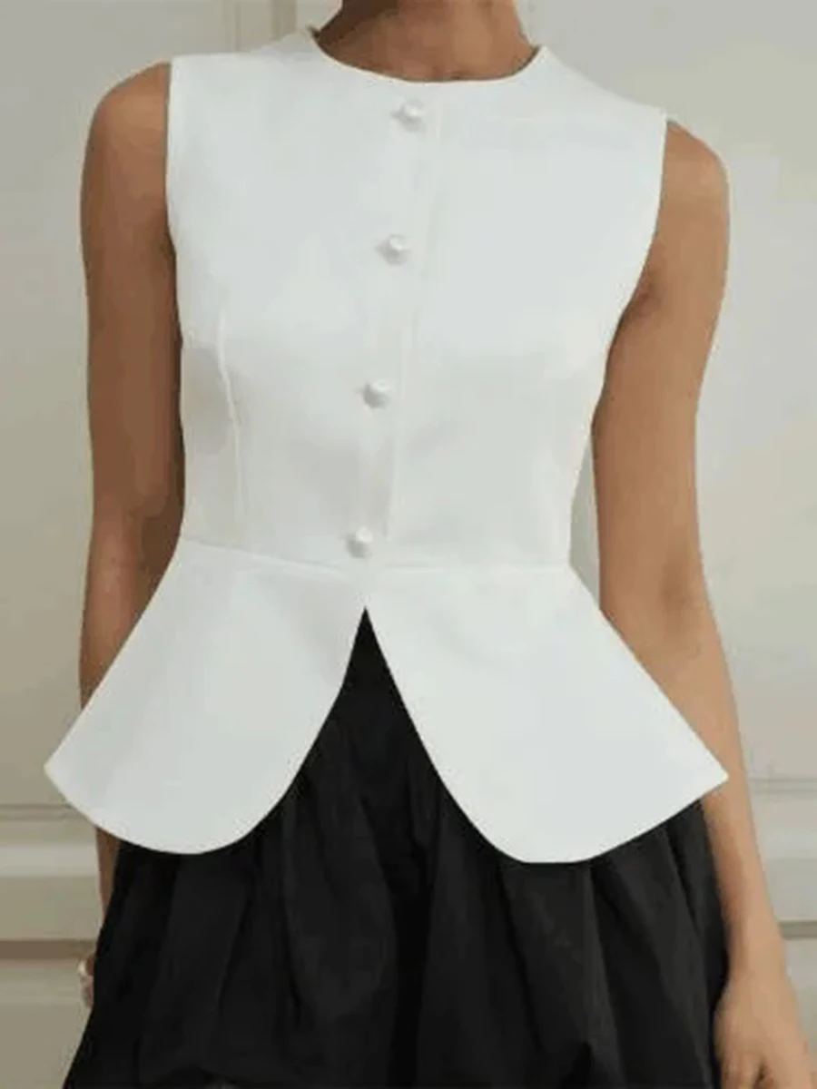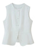 Cyflymder Office Ruched Hem Tank Top for Women O Neck Sleeveless Patchwork Single Breasted Temperament Vest Female Fashion
