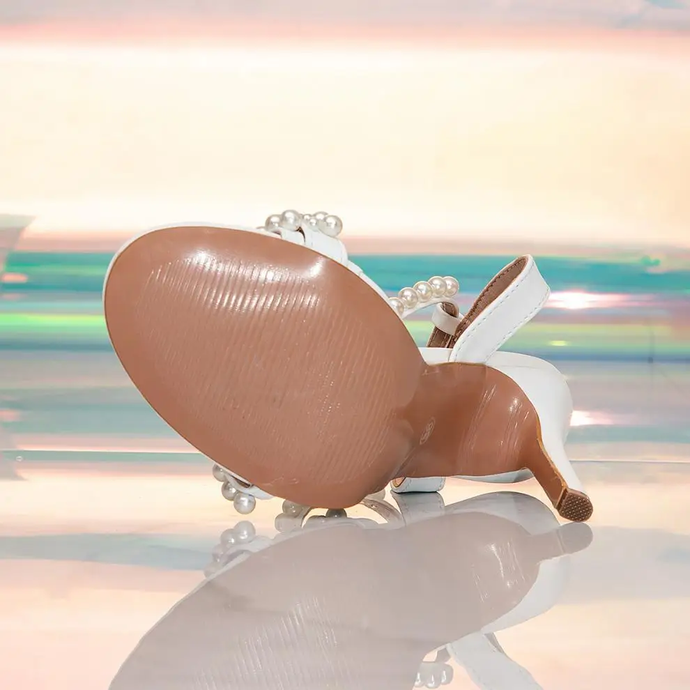 Cyflymder Pearl Sandals Round Toe Large Size Low-Heeled Shoes With Strap 2025 Women's Suit Female Beige Rhinestone Big Low-heeled New High