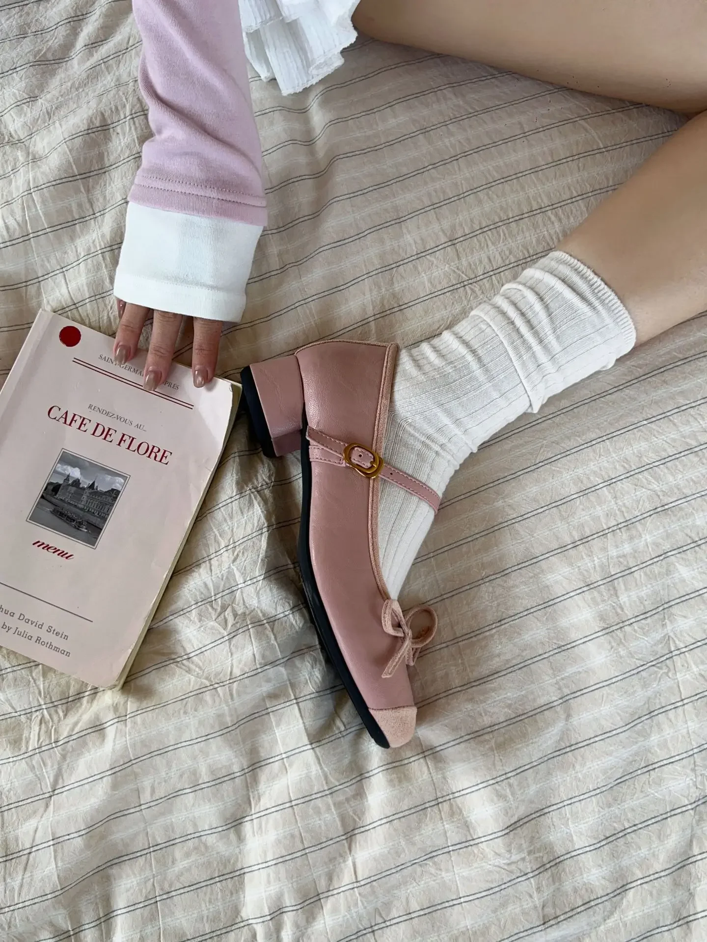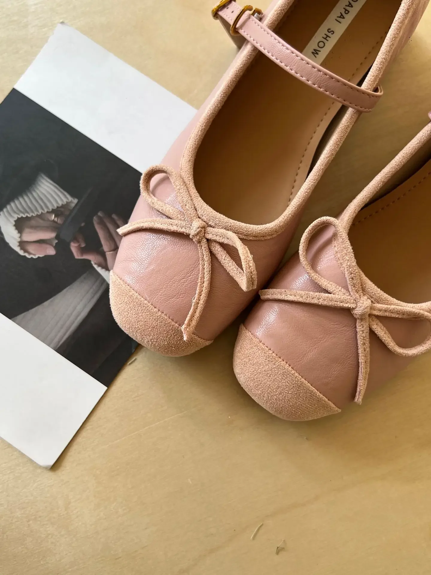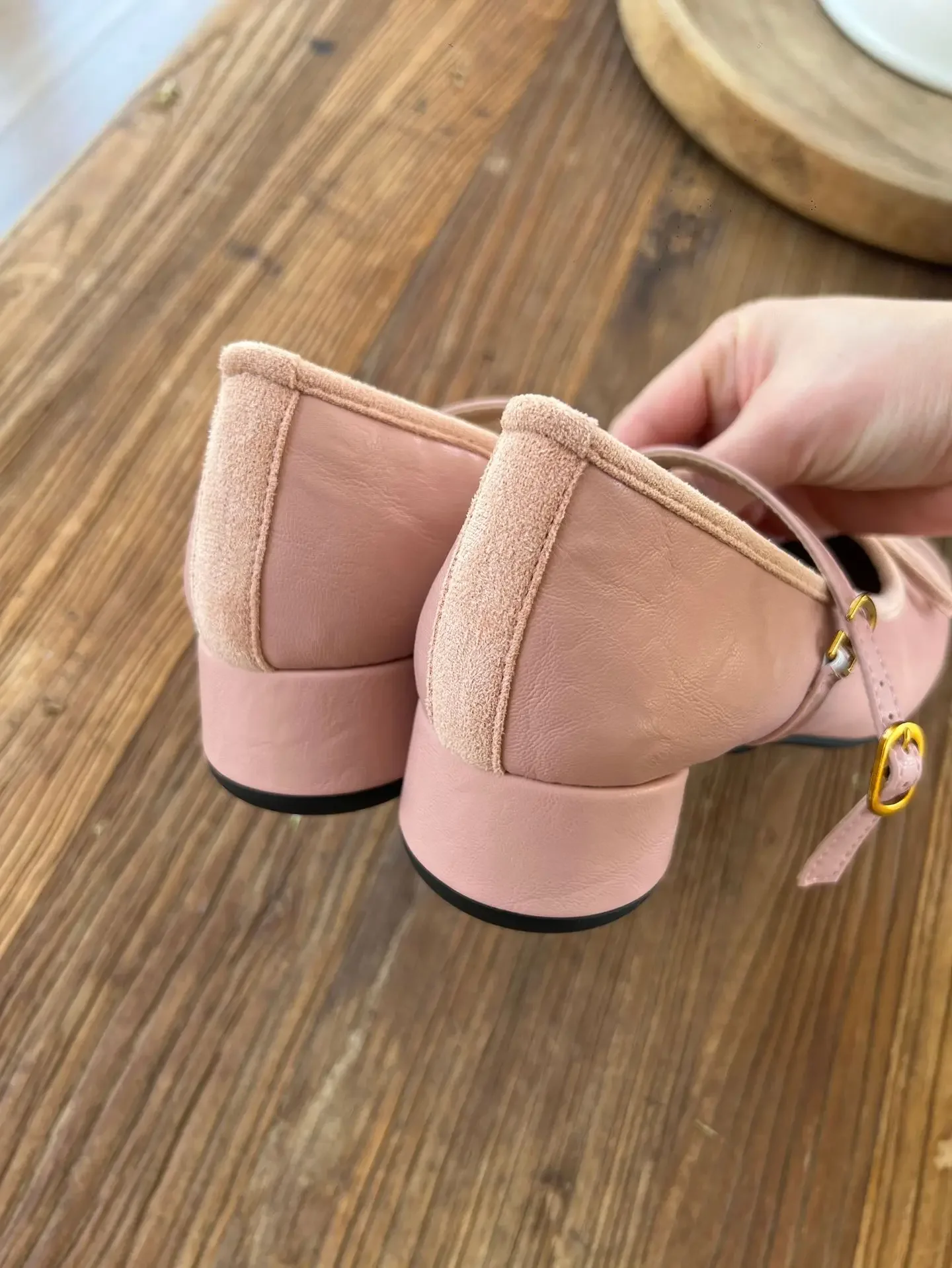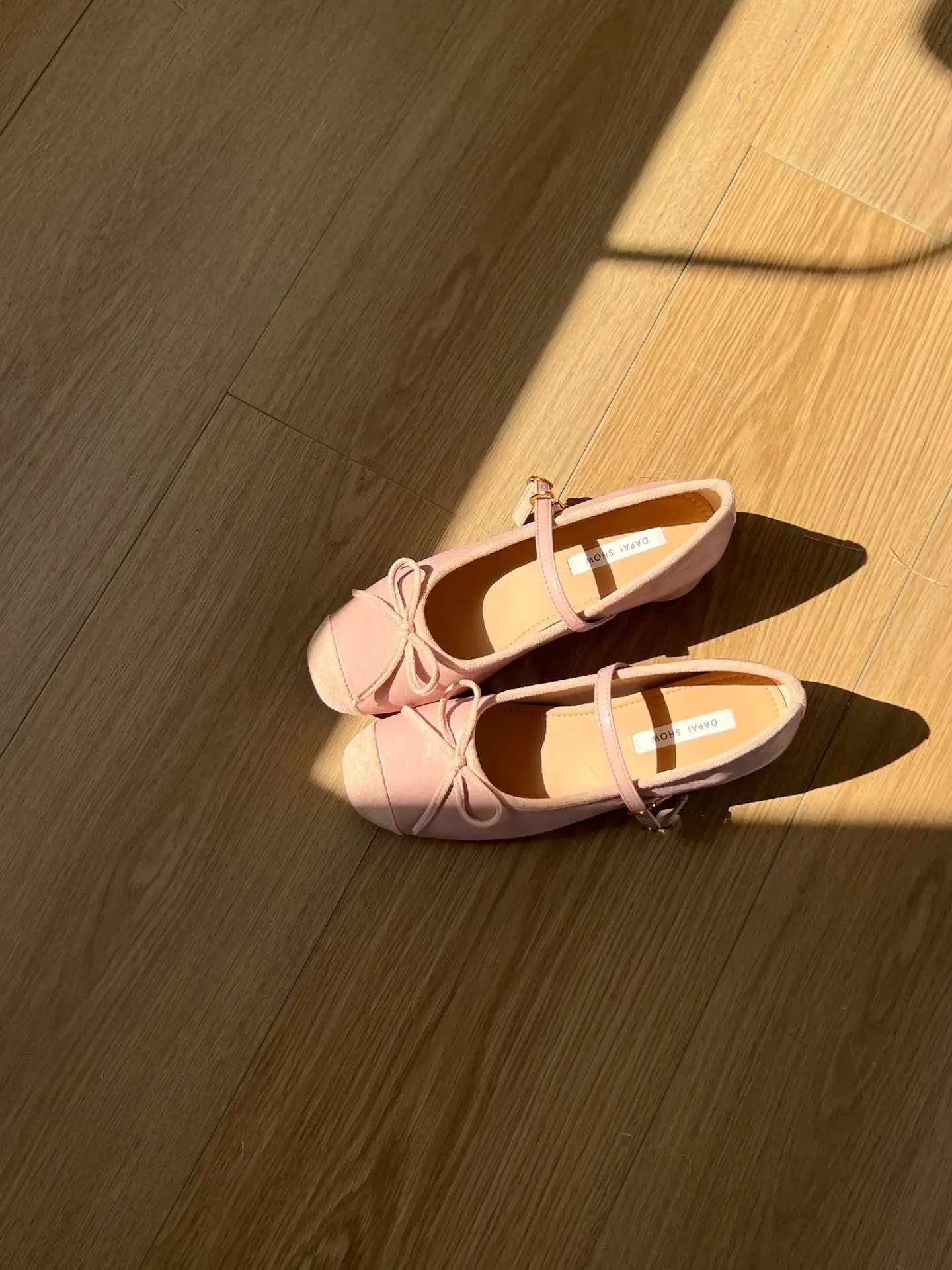 Cyflymder Pink French Ballet Style Chunky Heel Single Shoes Women Summer Outdoor Wear New Mary Janes Shoe Butterfly Knot Microfiber Upgrad