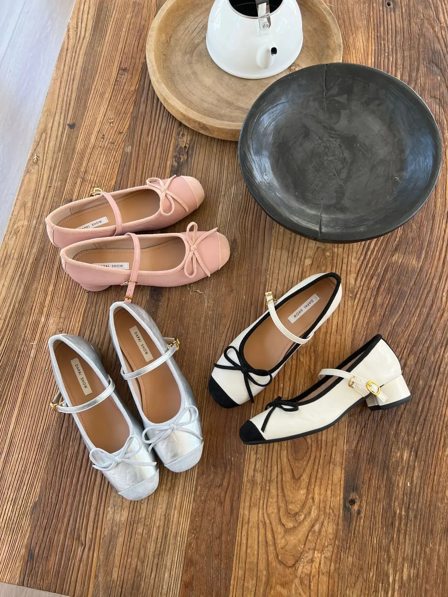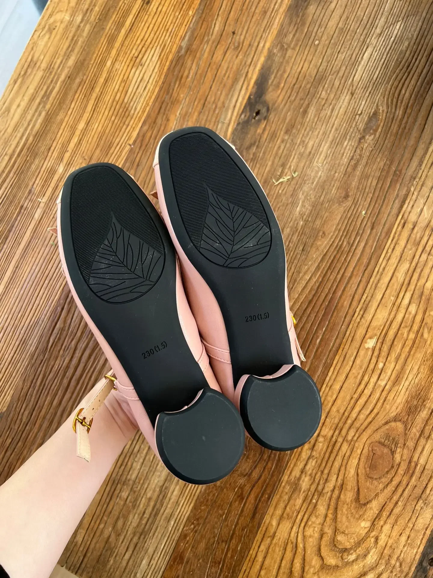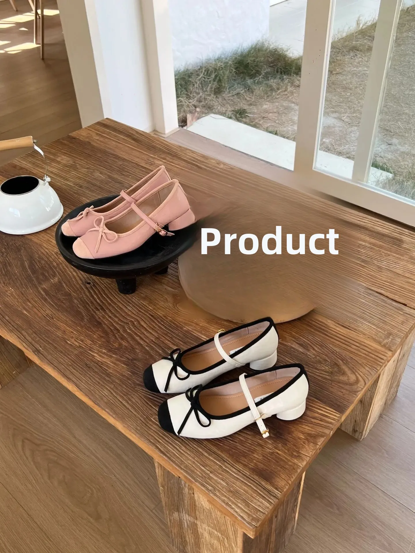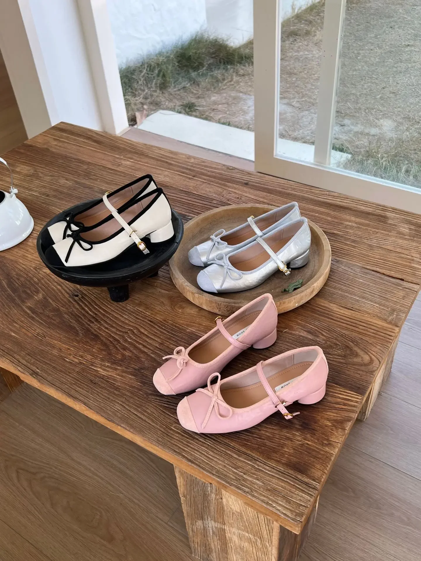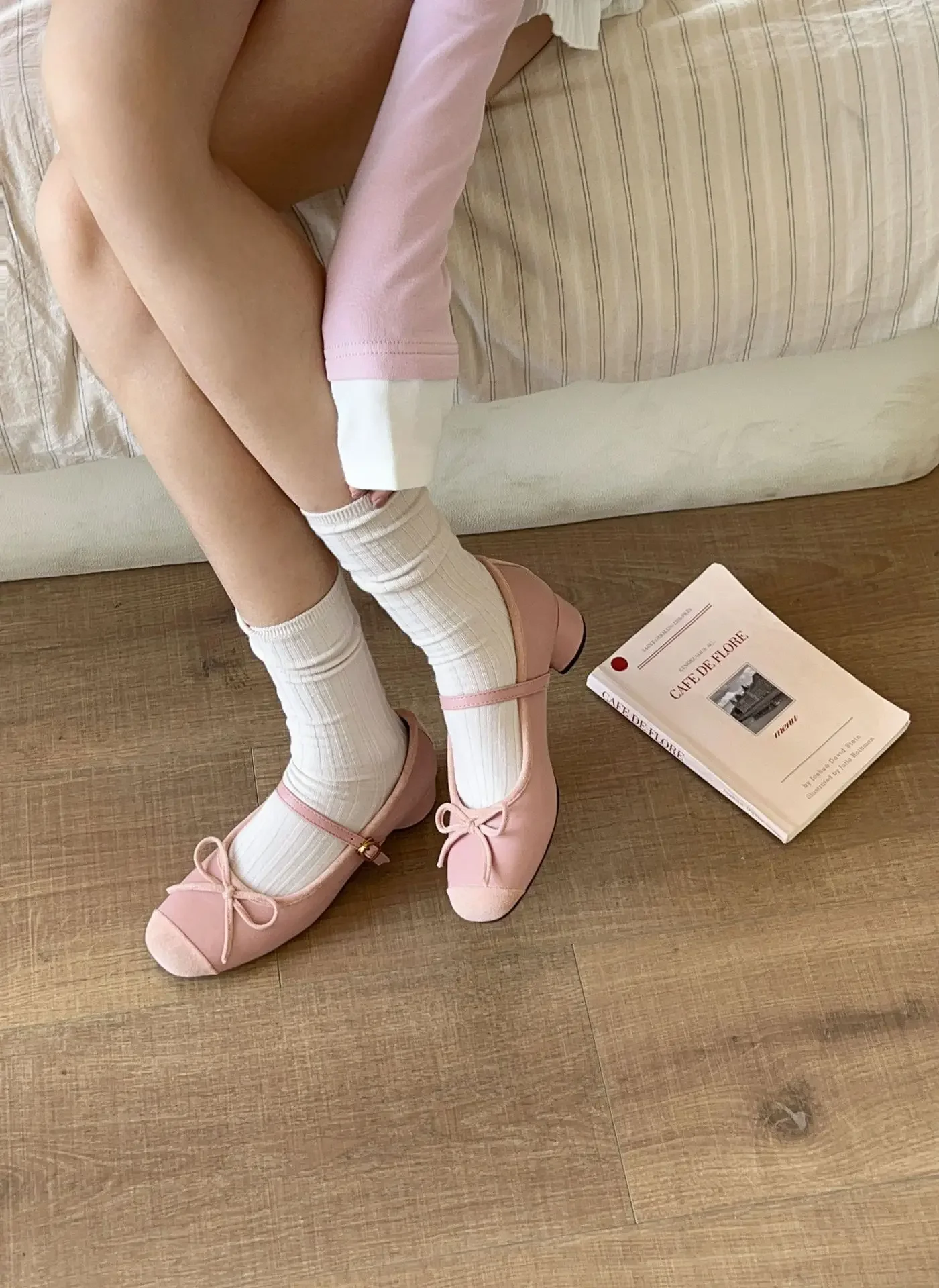 Cyflymder Pink French Ballet Style Chunky Heel Single Shoes Women Summer Outdoor Wear New Mary Janes Shoe Butterfly Knot Microfiber Upgrad
