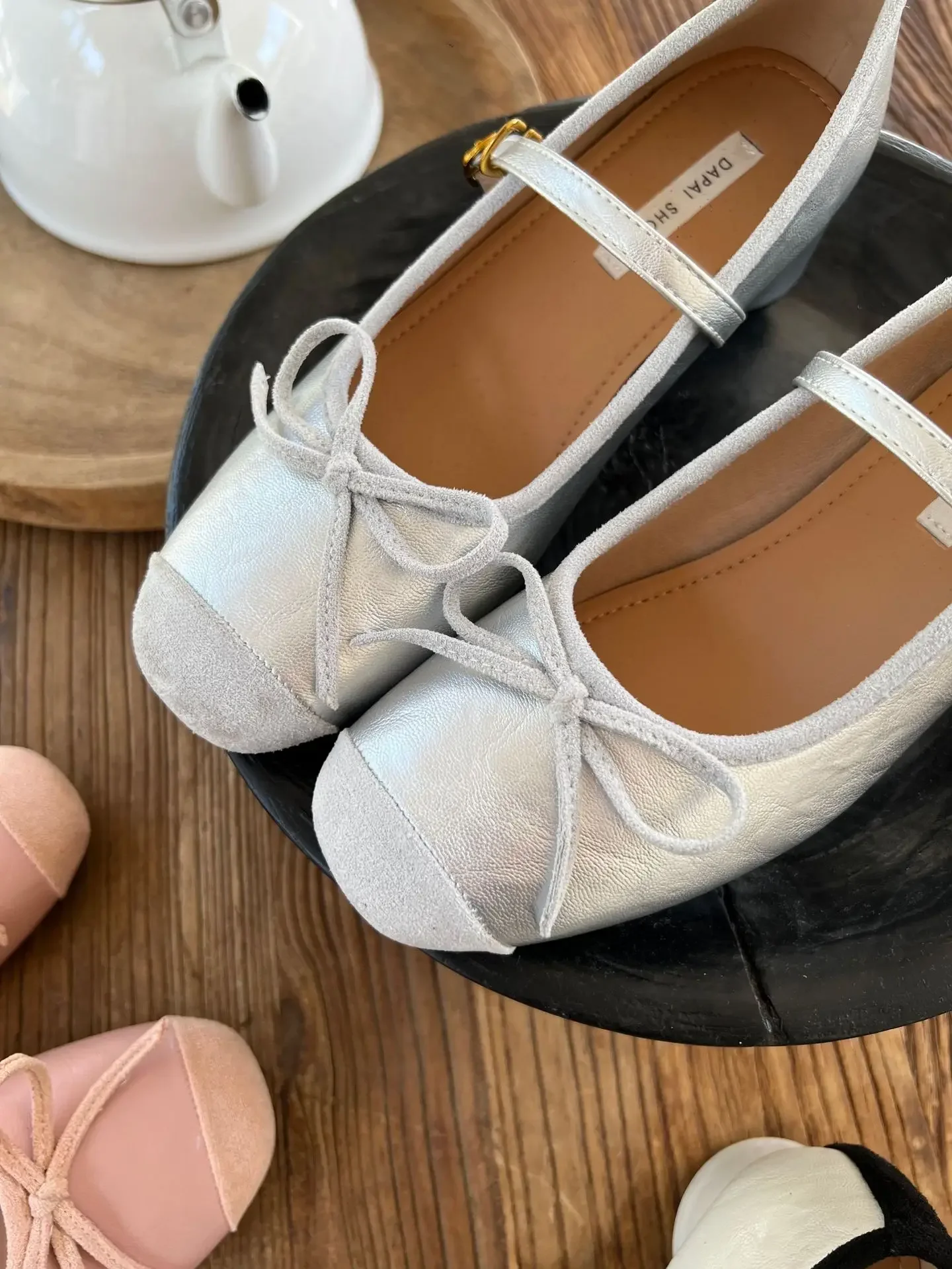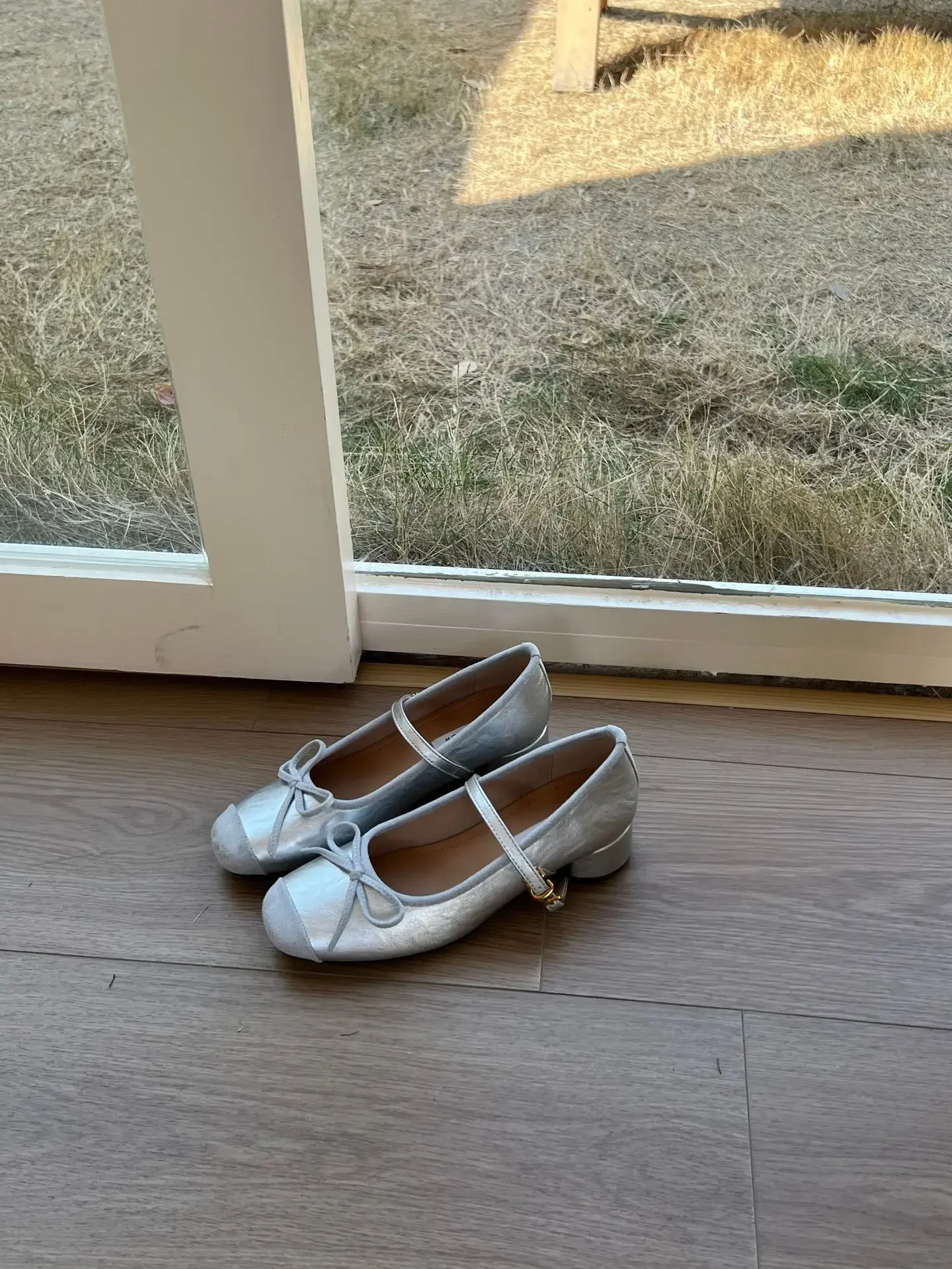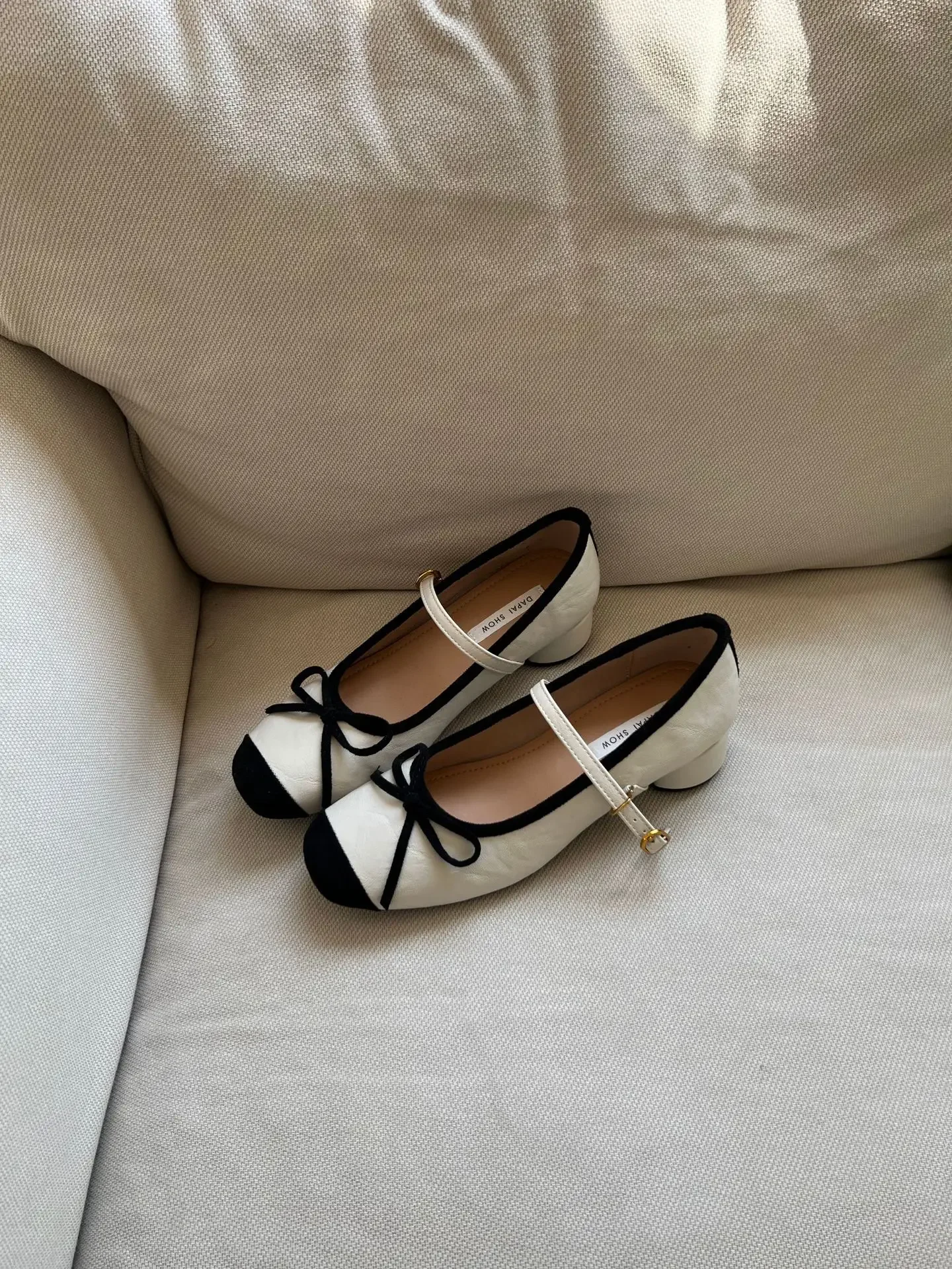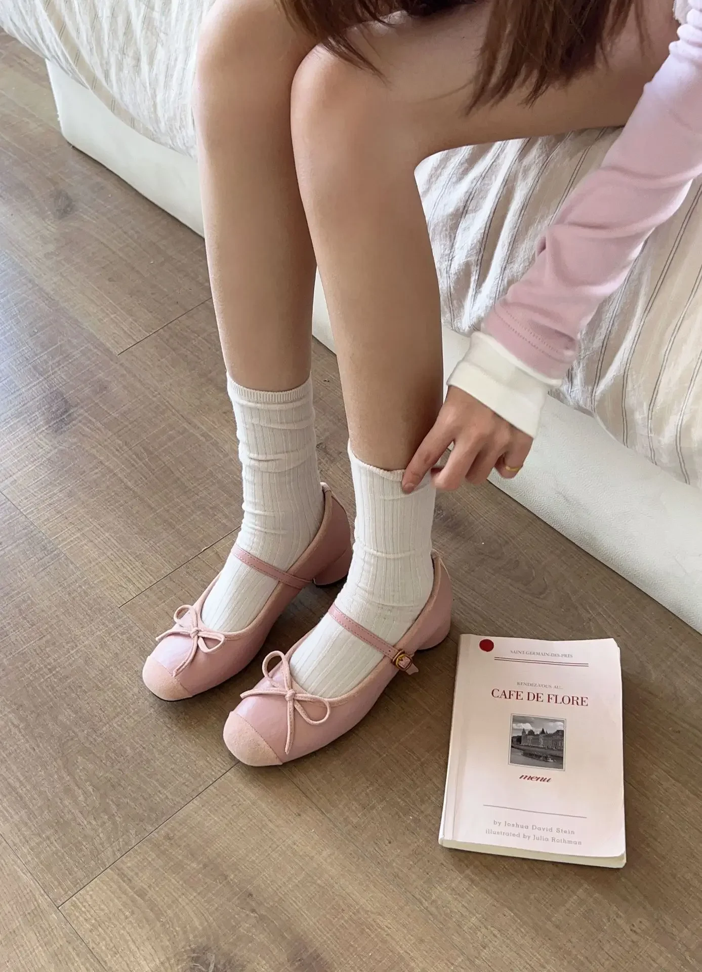 Cyflymder Pink French Ballet Style Chunky Heel Single Shoes Women Summer Outdoor Wear New Mary Janes Shoe Butterfly Knot Microfiber Upgrad