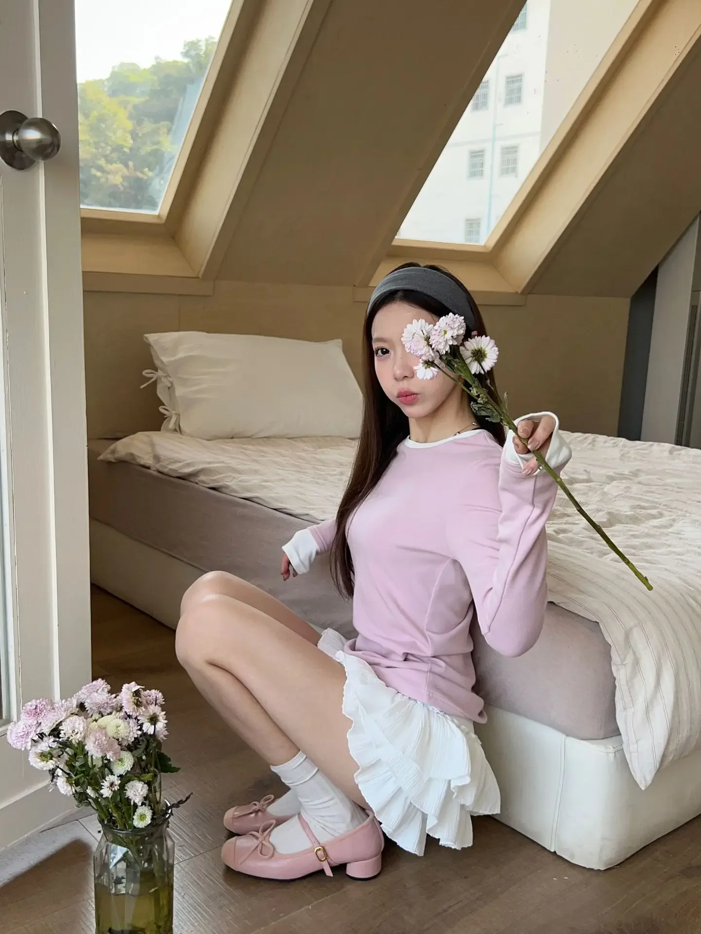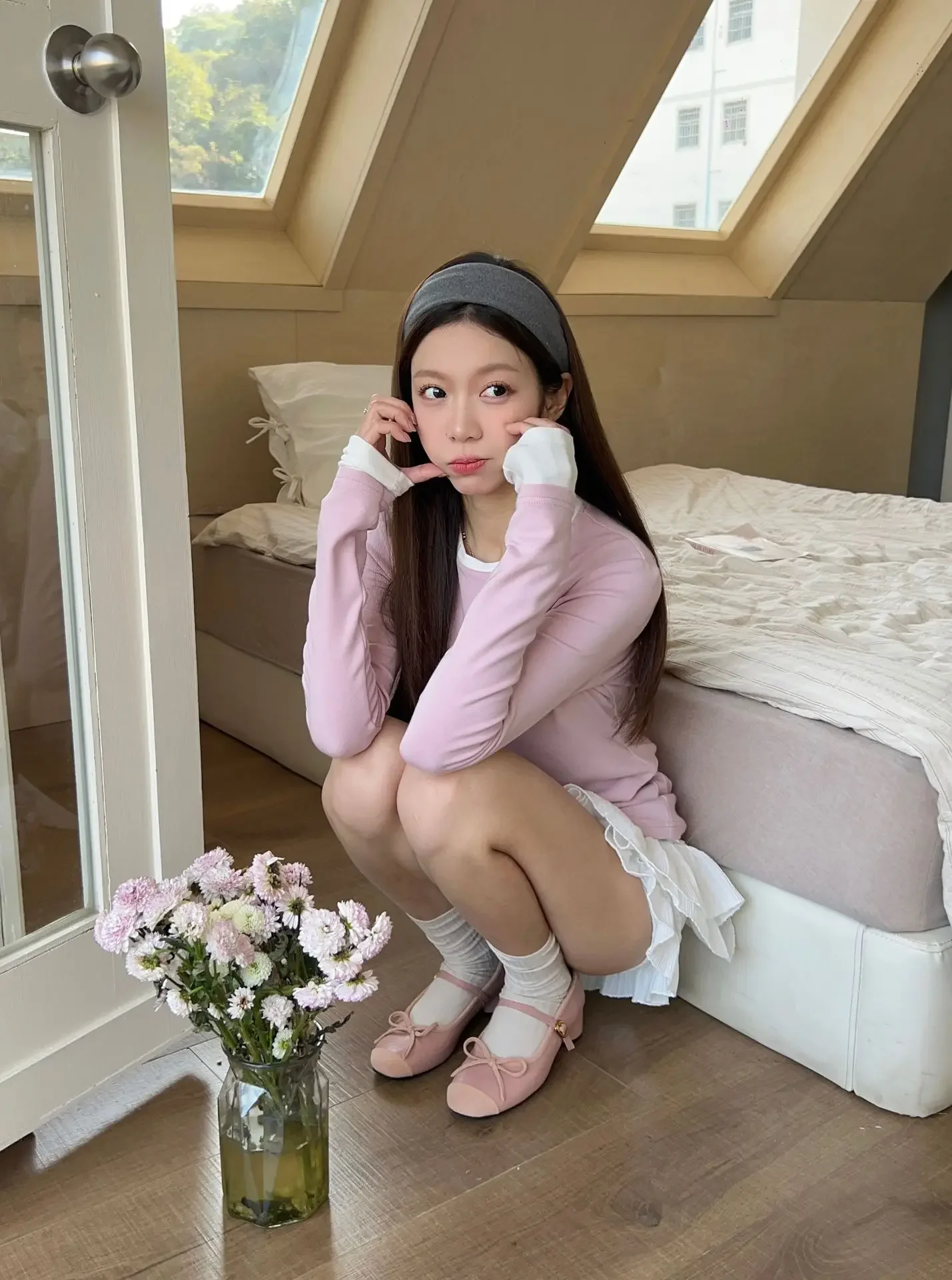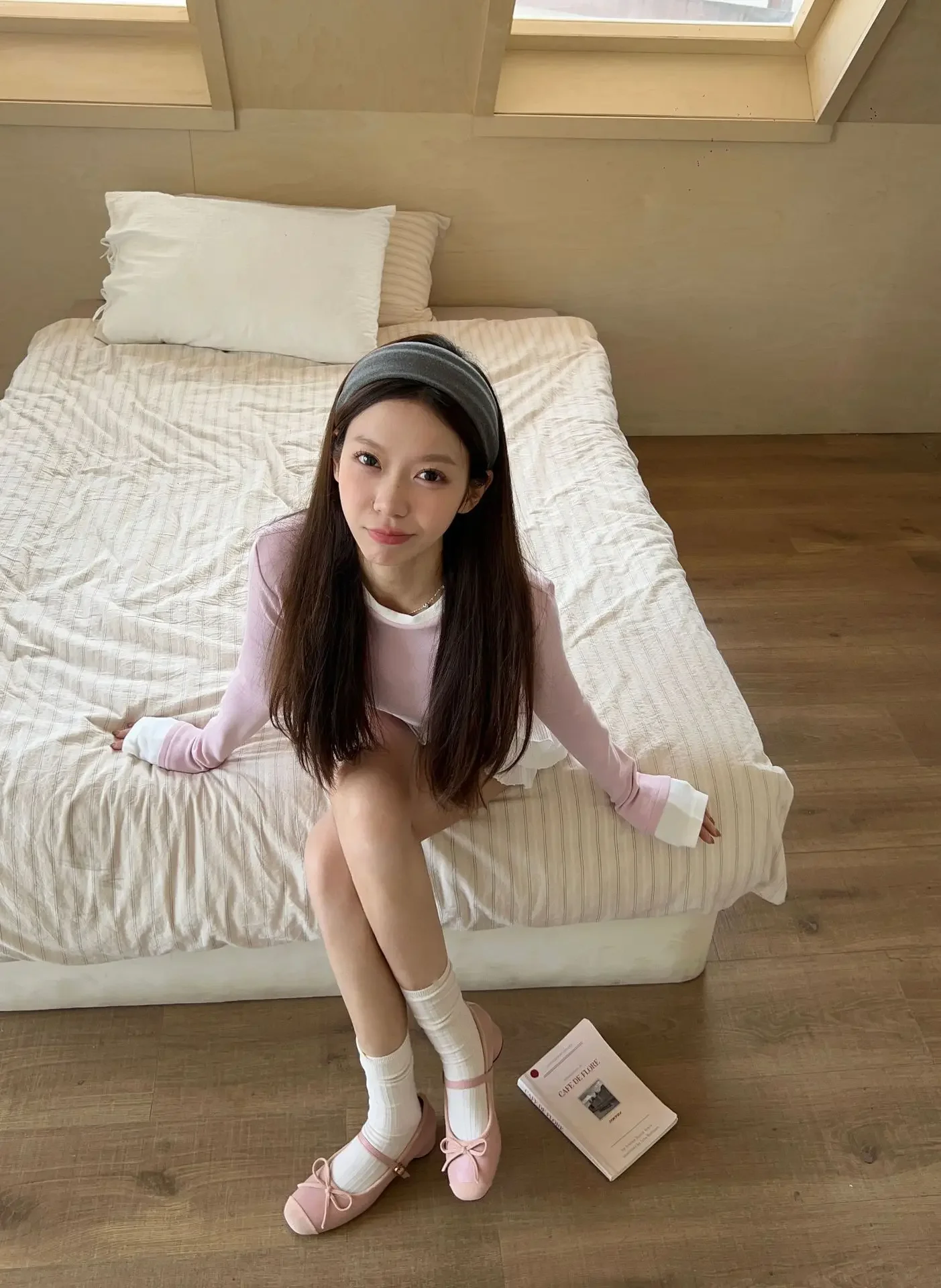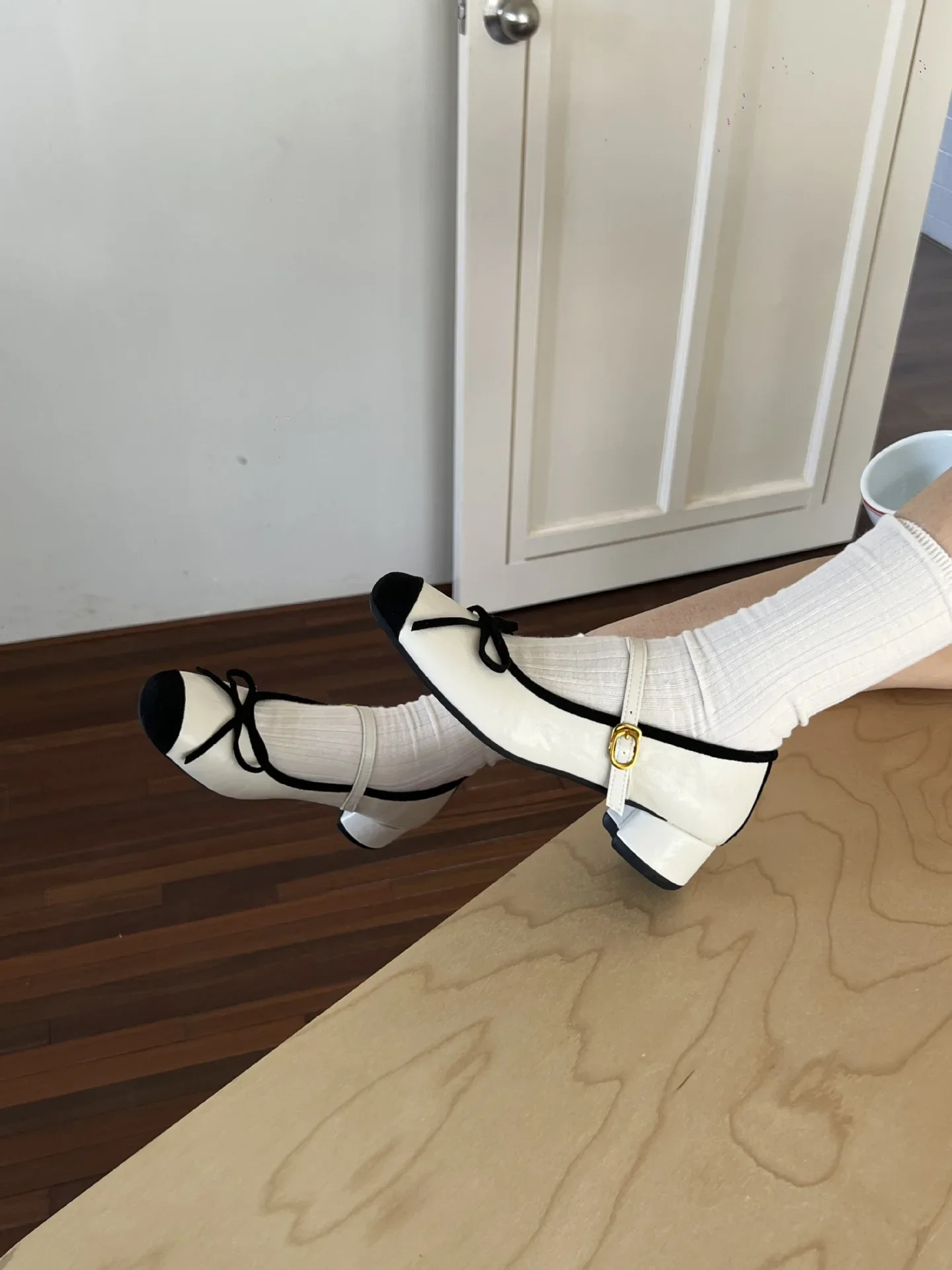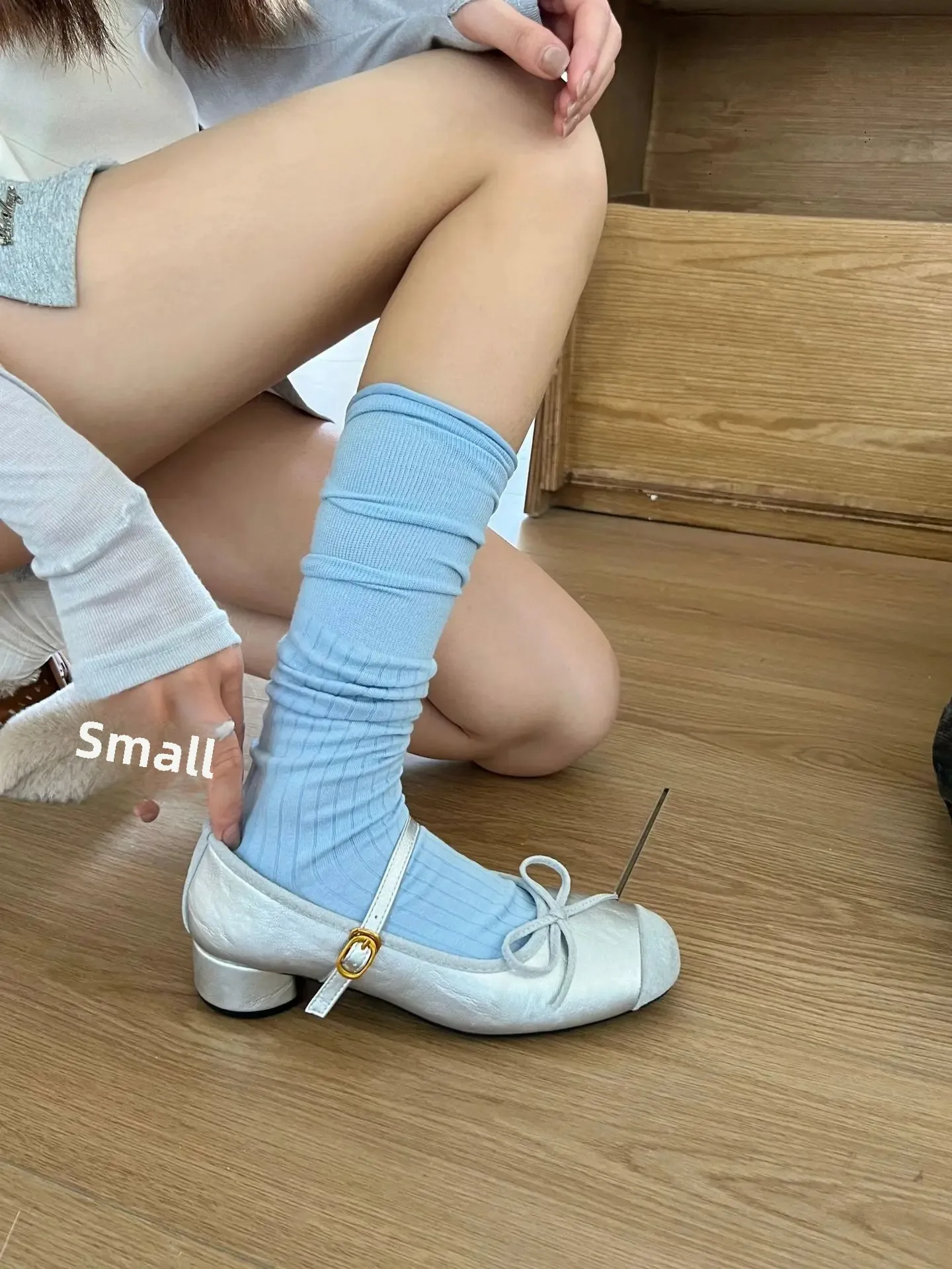 Cyflymder Pink French Ballet Style Chunky Heel Single Shoes Women Summer Outdoor Wear New Mary Janes Shoe Butterfly Knot Microfiber Upgrad