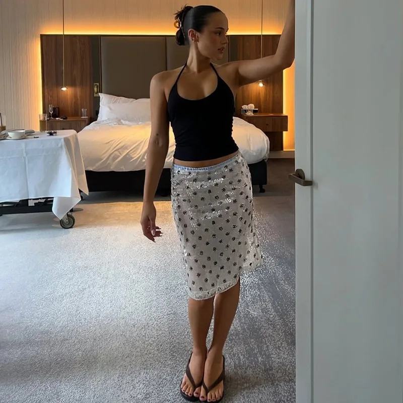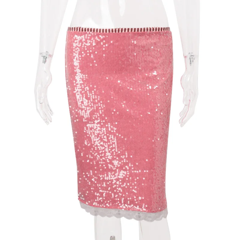 Cyflymder Pink Glitter Skirts Women Fashion Sexy Sequins See Through Slim Skirts 2025 new summer Vintage Y2k Hot Girls Party Club Skirts