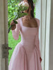 Cyflymder Plaid Long Sleeve Pleated Maxi Dress For Women Autumn Fashion Square Collar High Waist A-line Club Party Long Dress New