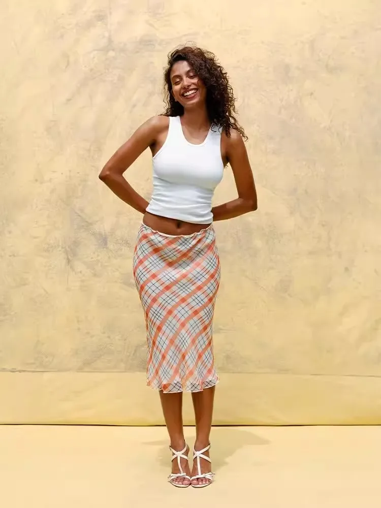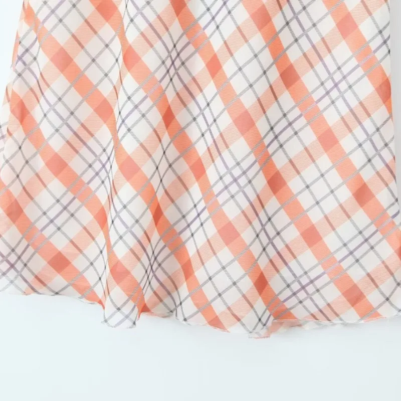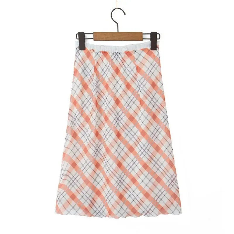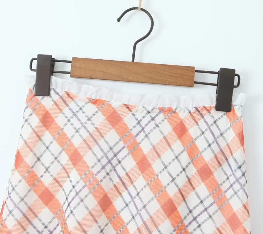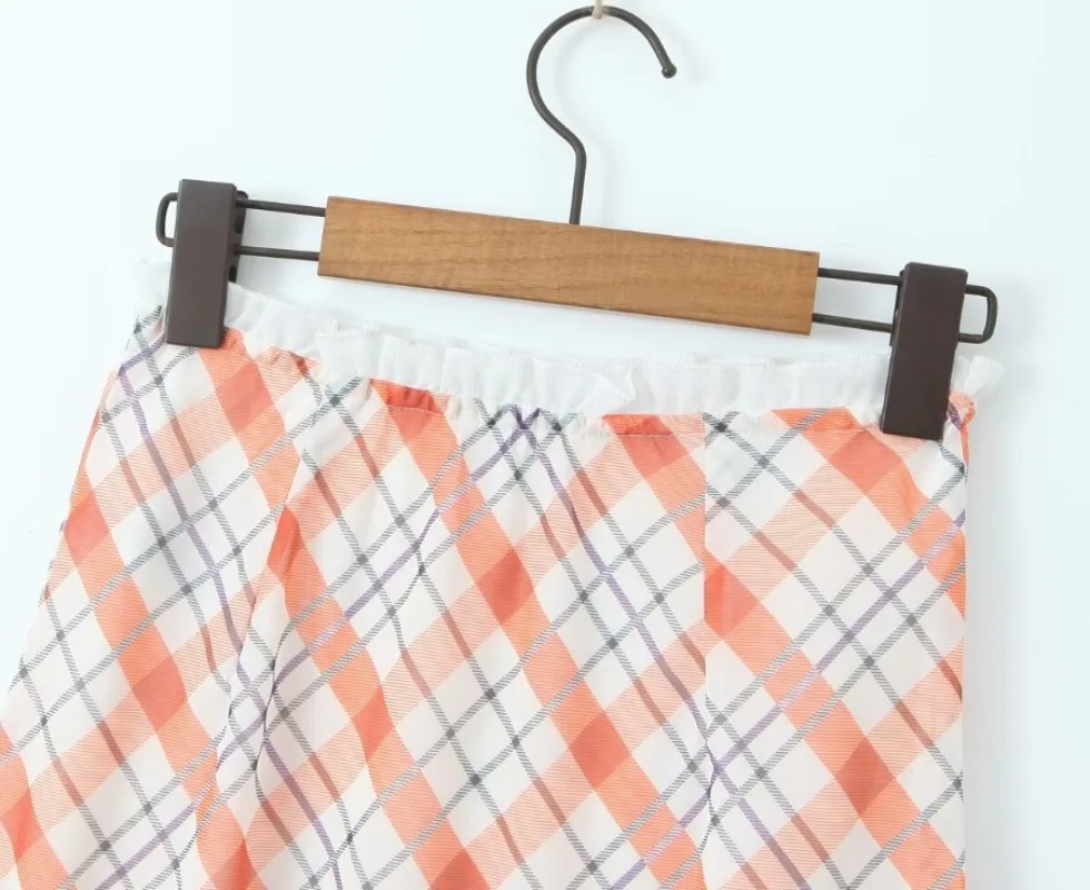Cyflymder plaid skirt women elastic waist midi skirts new summer skirt vintage ruffle trim detail skirt women women clothing